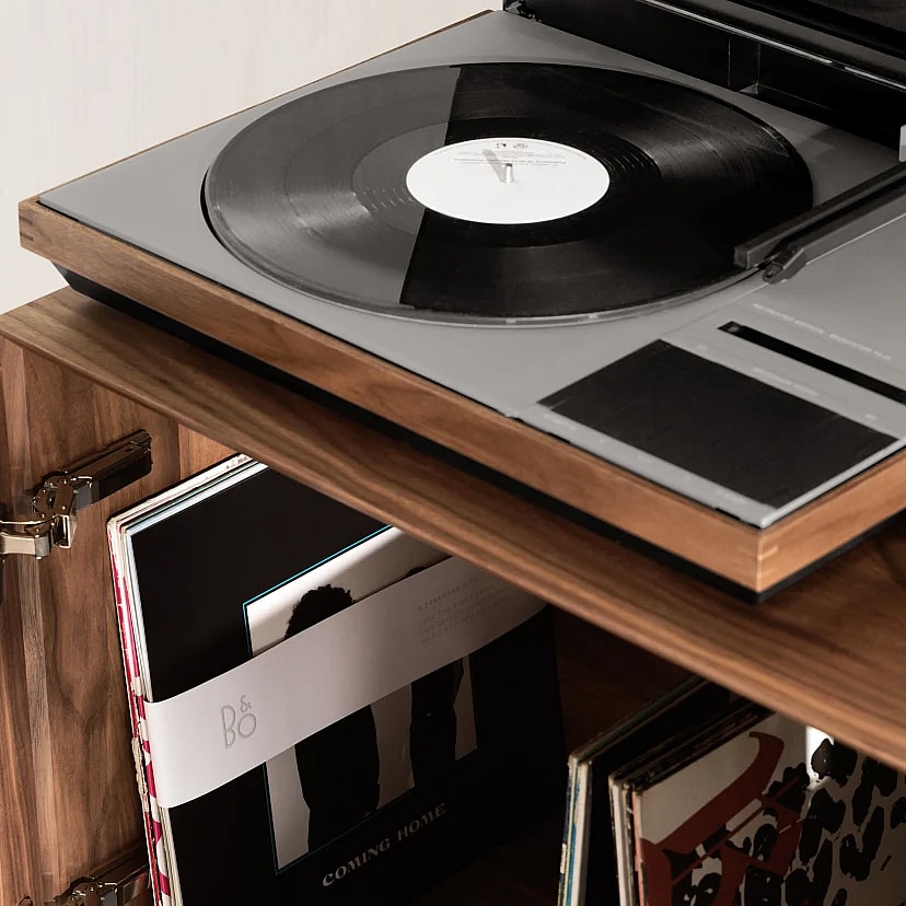 The Beosystem 72-22 is the total package for vinyl nerds and audiophiles — vinyl lovers can use the walnut stand as a record storage unit, while the unit itself also features a remote charging station and wireless connectivity hub.