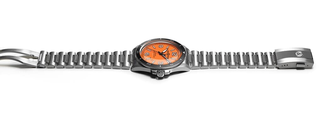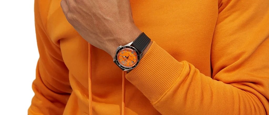 Available primarily in a stainless steel iteration, the BR V2-92 in Orange can also be refitted with a rubber strap for sporty style and performance.
