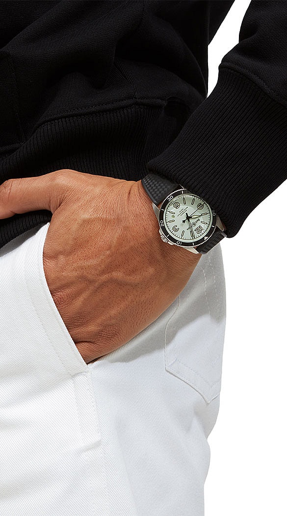 The Bell & Ross BR V2-92 Full Lum also manages to pull off that tricky balance of utilitarian style and performance, using an engaging luminescent dial properly suited for low-light situations on water and in land.