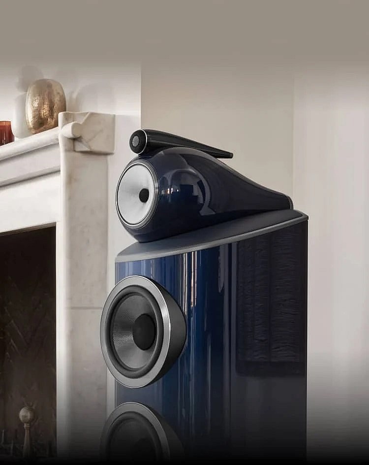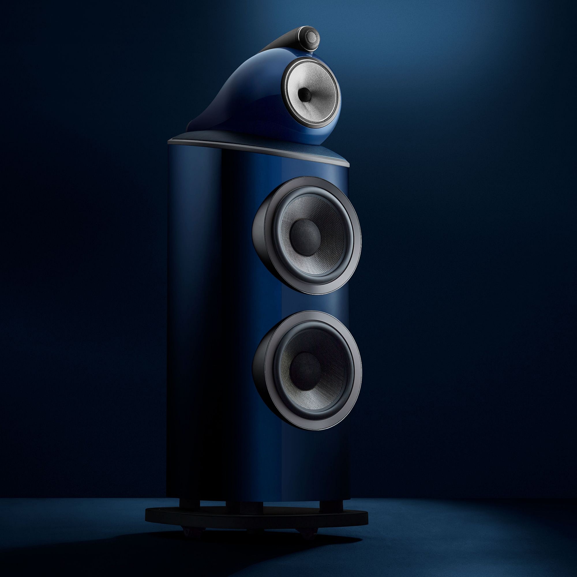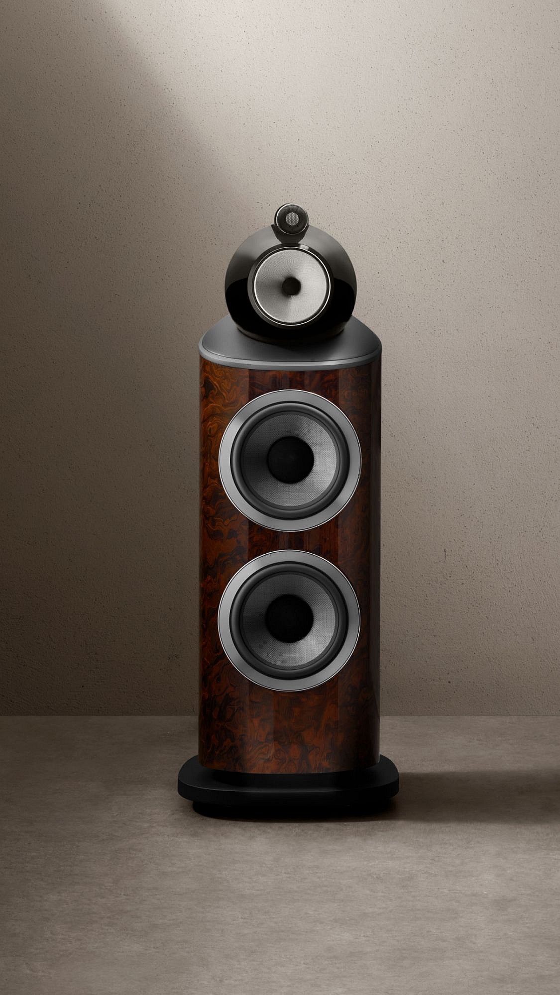 Style points are abound when it comes to the 801 D4 Signature: The visually striking, next-level speakers are available in a handsome California Burl Gloss wood veneer and a crisp Midnight Blue Metallic paint.