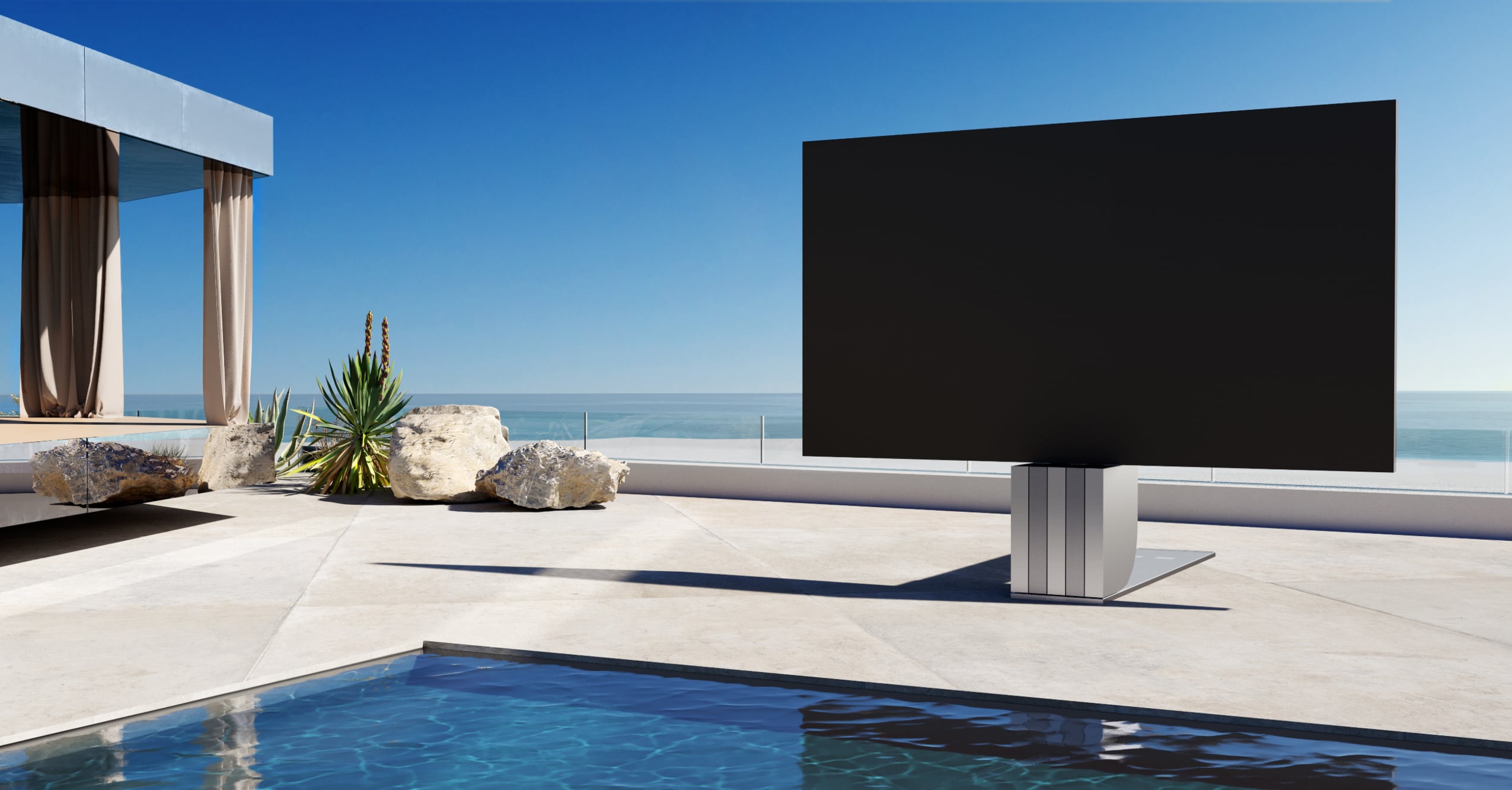 The television boasts five MicroLED panels that interlock once the device itself unfolds, and the screen can then rotate up to 180 degrees to allow for a seamless viewing experience across multiple outdoor locations (preferably on a sunny pool deck, though).