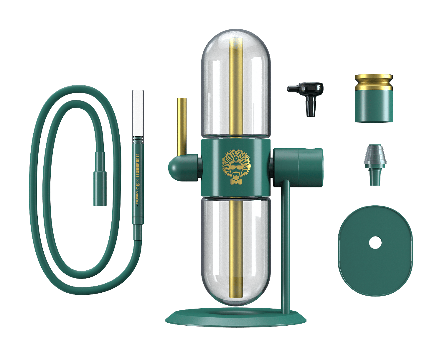 As the cannabis collab announcement puts it, the pipe “elicits a powerful experience without having to share contact by generating kinetic motion activation via cascading water, opposing airflow technology and the natural force of gravity.”
