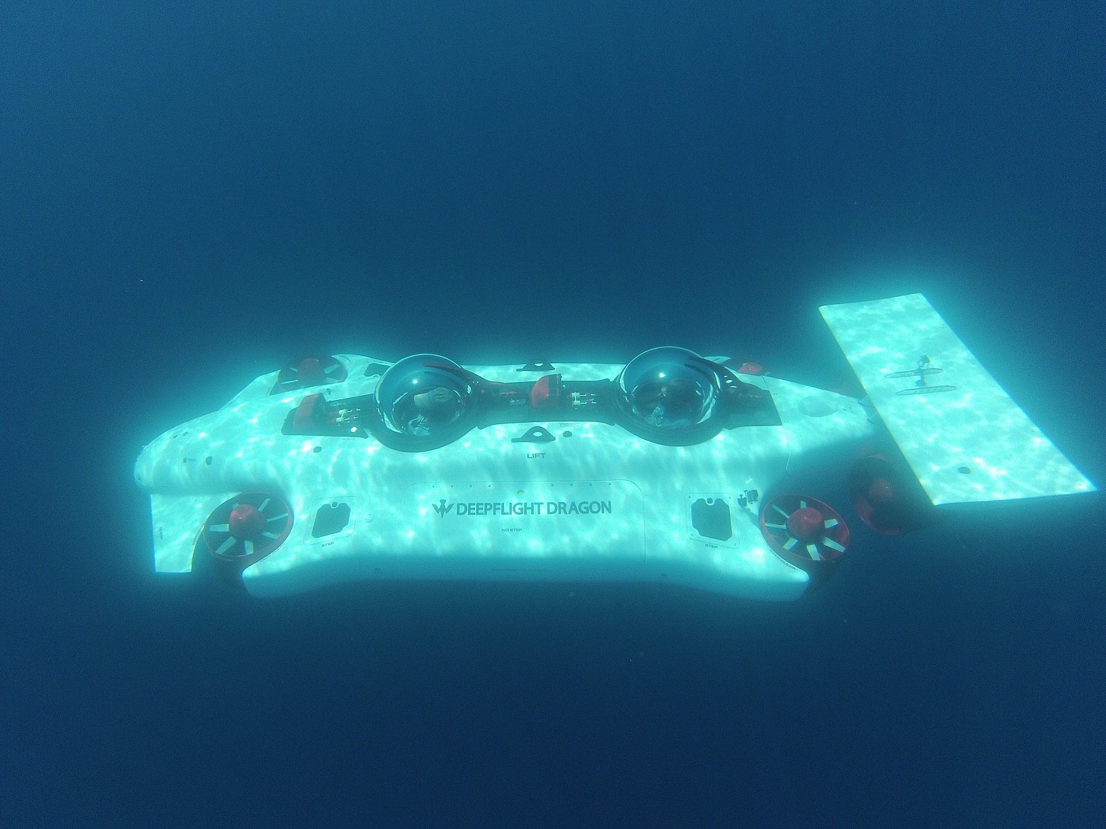 Those vertical fans are your ticket to the depths, because the Dragon naturally floats, which means if the fans stop for some reason, you’ll bob to the surface automatically.