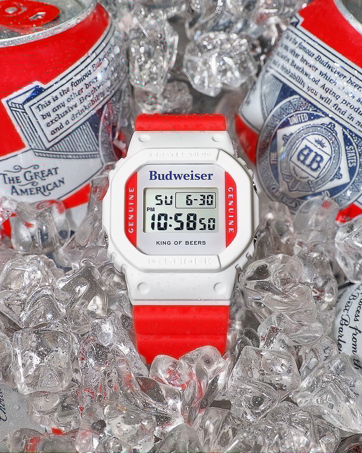 G-SHOCK is gearing up for Memorial Day Weekend by teaming with all-American beer brand Budweiser for a new, limited-edition DW5600 timepiece.