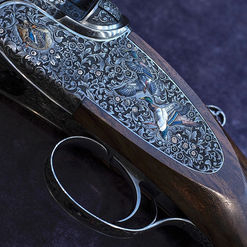 The SO Sparviere is the “perfect platform for this celebrative piece,” Ferlito notes, “a traditional, exclusive mechanism that was transformed by Beretta to create something outstanding and surprising, with the side plates opening like the wings of a bird. The craftsmen of our Pietro Beretta Selection atelier managed to astound us again with this unique shotgun, going beyond the limits of their immense skills and showing us something unprecedented.”