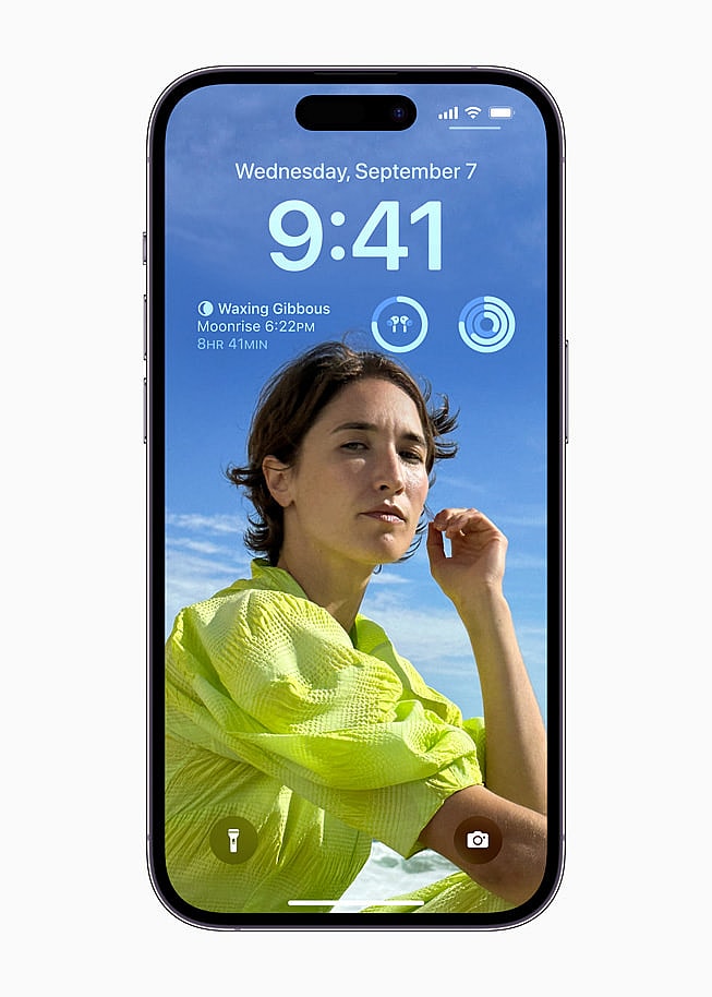 The 6.1” Super Retina XDR display in the iPhone 14 Pro is now always-on, making notifications accessible at a glance at all times. This is a much more useful feature with iOS 16’s upgrades to equip lock screens with widgets, photos and other focus-centric elements that will change depending on timing or location, so whether Office Focus or Home Focus is enabled, the right notifications will come through and always be a look away—no annoying screen tapping necessary.
