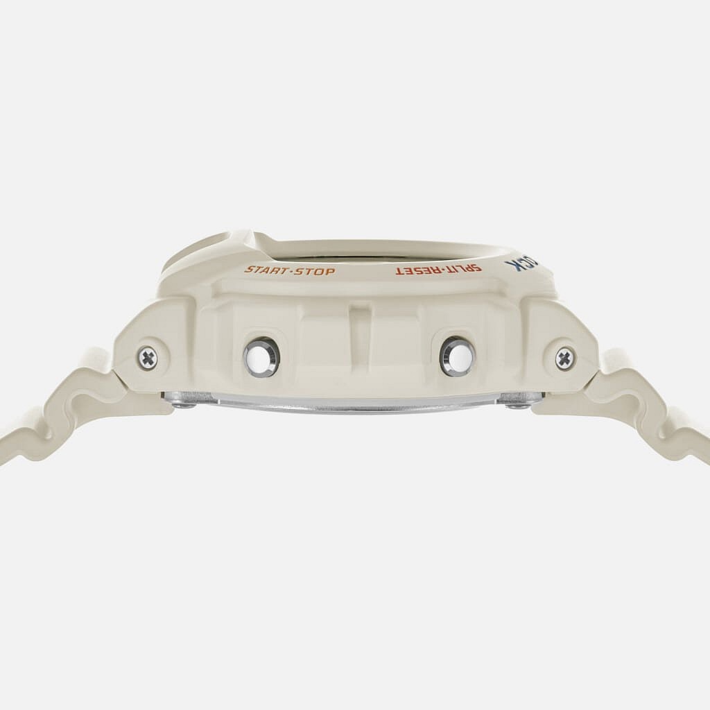 All of its colors, from the off-white 53.2mm resin case, the Mode and Start/Stop indicators in sunshine yellow, and the Adjust and Split/Reset indicators in tangerine orange, were featured on the Reagan-era Casio PT-80 keyboard.