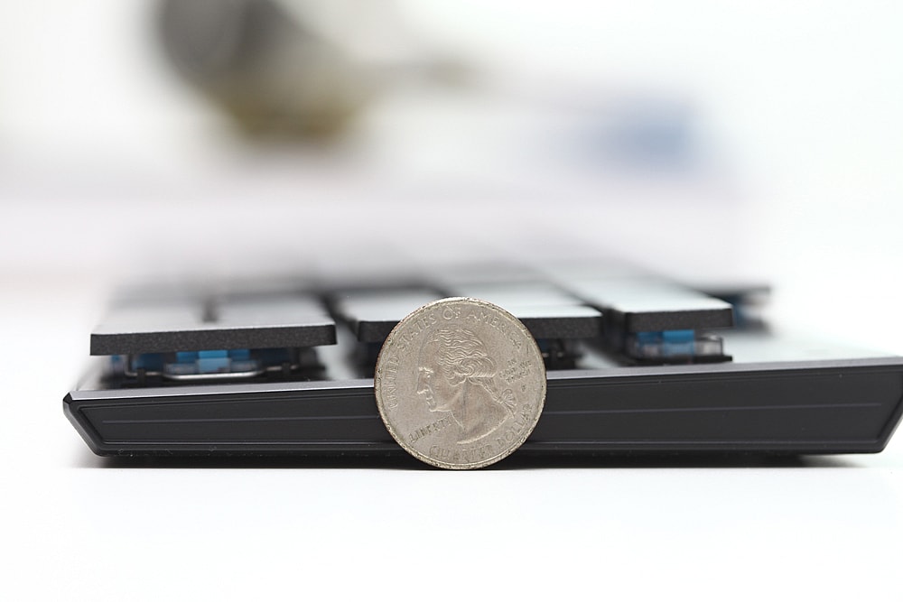That may sound trivial, but the resulting product is an ultra-thin 18mm keyboard that requires less force and finger travel to operate. Those who type every day should experience less fatigue in the long run.