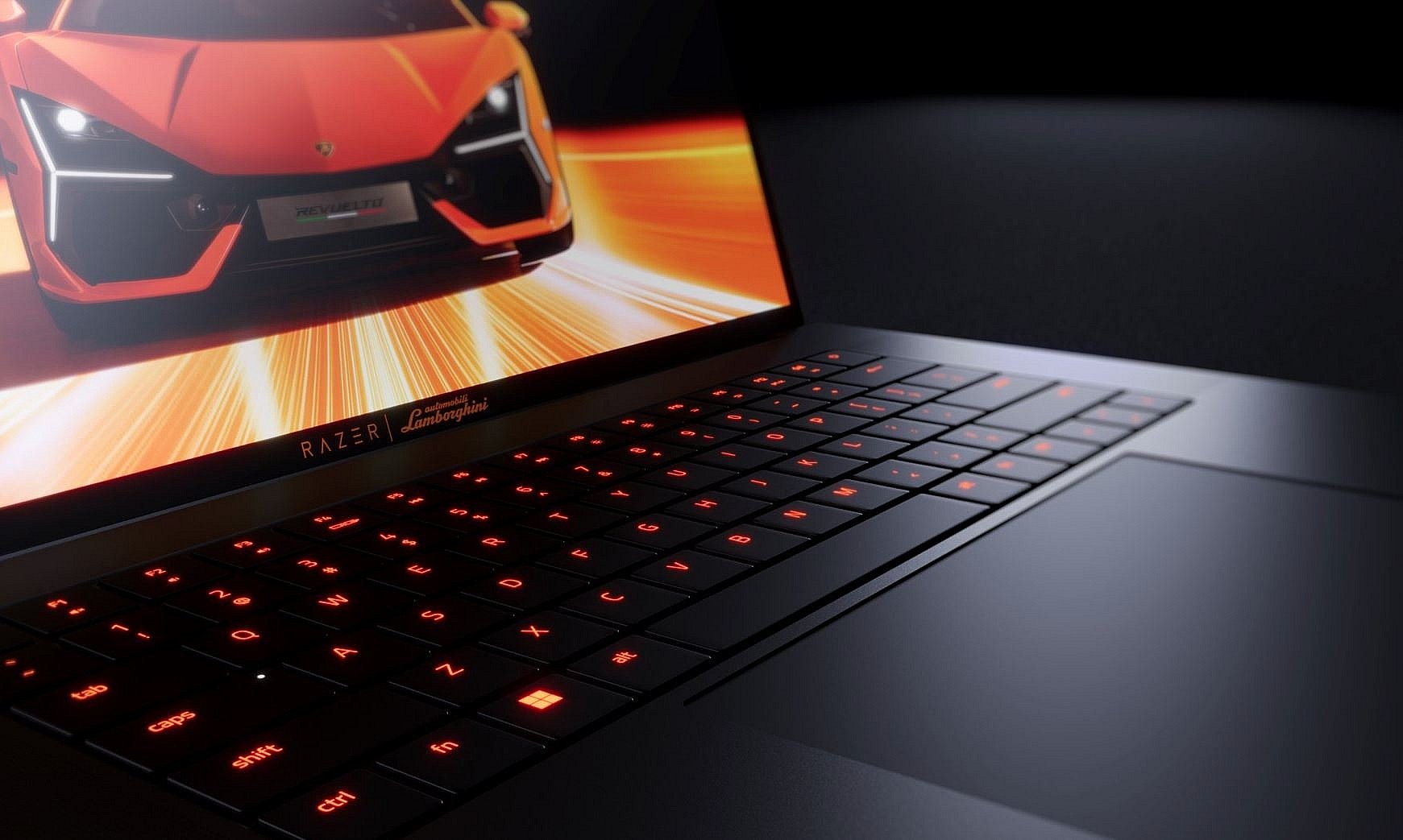 Other aesthetically pleasing features include accented USB ports, a personalized startup sequence, and a unique version of the Razer Chroma RGB lighting system set to Lamborghini’s Arancio Apodis orange—the same hue that dressed the Revuelto upon its unveiling in early 2023.