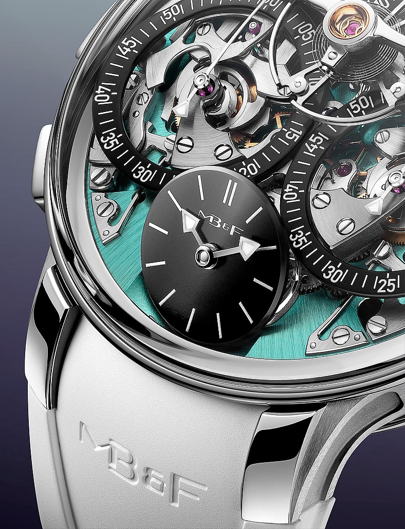 According to MB&F, Northern Irish watchmaker Stephen McDonnell, who created the original LM Sequential EVO’s movement, had originally included provisions for a flyback function. “McDonnell felt that it would be unwise—reckless, even—to release the watch with a flyback when there were so many unproven elements in play,” the company stated in its release. The technical core of the watch relies on internally jeweled vertical clutches and a unique jeweled roller within the flyback mechanism—a component so specialized that McDonnell had to manufacture the jewel himself for the first prototype.