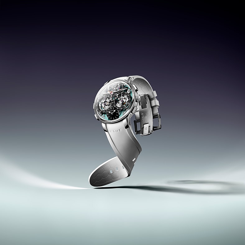 While the initial model introduced a groundbreaking “Twinverter” switch to toggle between multiple timing modes, the new edition adds a “flyback function” to both of its independent chronographs. The term refers to a chronograph technology originally created for 1930s-era aviators who needed to stop, reset and restart their mechanical stopwatches with a single press of a button. In the LM Sequential Flyback EVO, this capability is paired with a “Twinverter” binary switch that inverts the status of both chronographs simultaneously. This allows for a variety of timing modes, including independent, split-second, cumulative, and lap-timer modes.