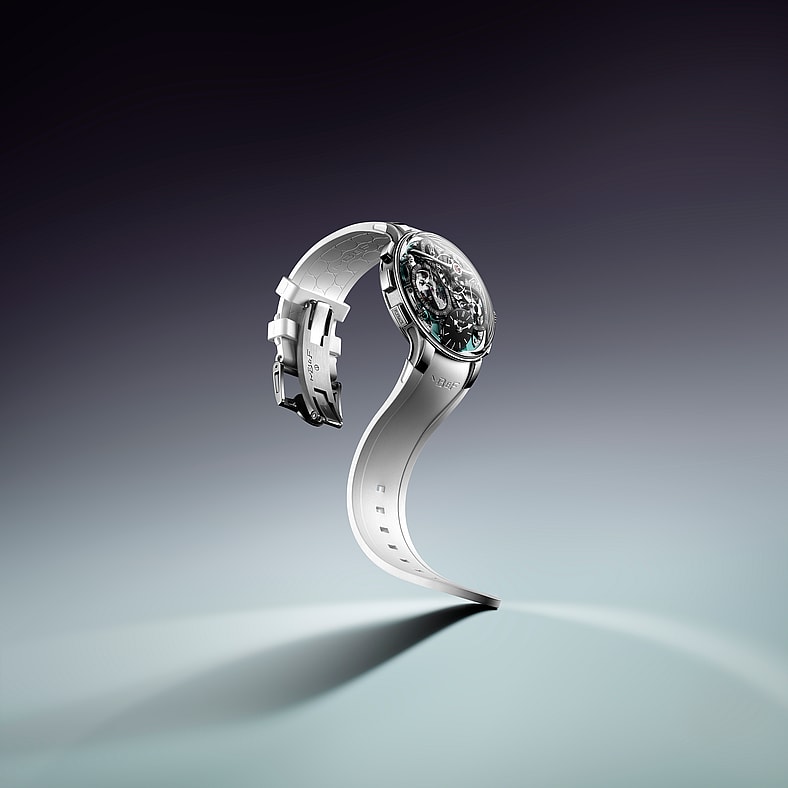 To improve legibility, it inherits the LM range’s signature tilted dial. As an MB&F EVO, the watch is engineered for an active lifestyle, featuring 80 meters of water resistance, a screw-down crown, and an integrated rubber strap—a sort of G-Shock of the six-figure timepiece segment. It also utilizes the “FlexRing” shock-absorption system, a proprietary dampener fitted between the case and the movement to protect the 621-component engine during active use.