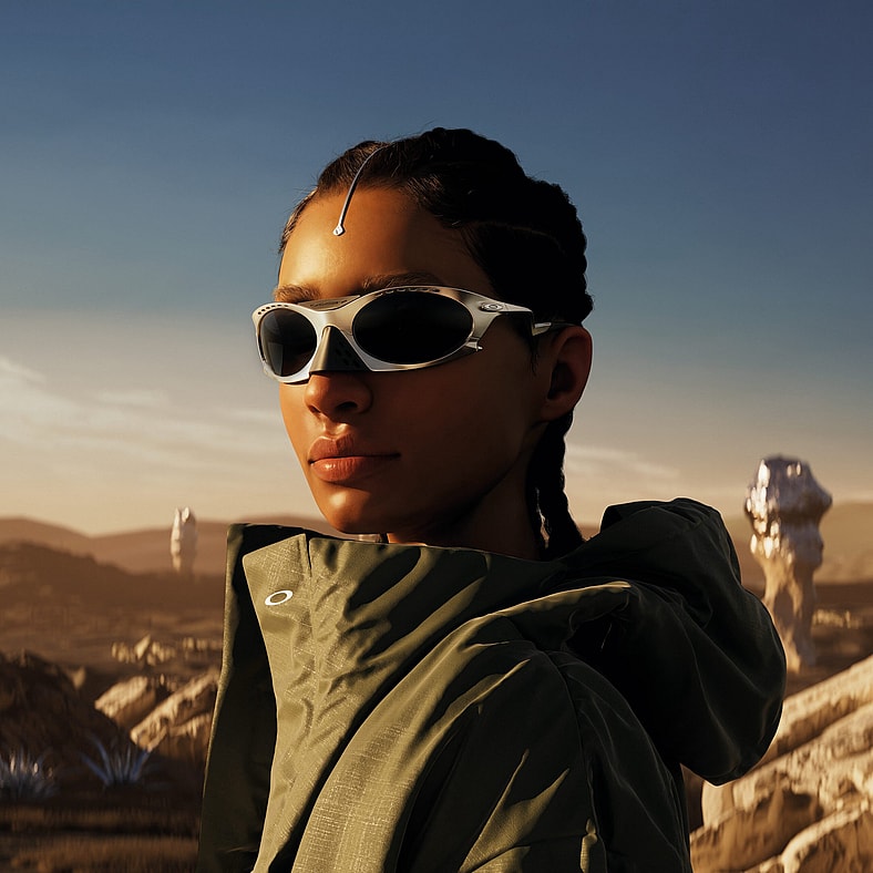 The sporty shadesmaker is pausing from heralding rapper Travis Scott as the company’s “Chief Visionary” and hyping Meta-branded AI glasses with the help of Patrick Mahomes to drop a flashy, sci-fi-inspired design that channels last year’s Moonveil collection and the metal and leather MUZM Mars shades.