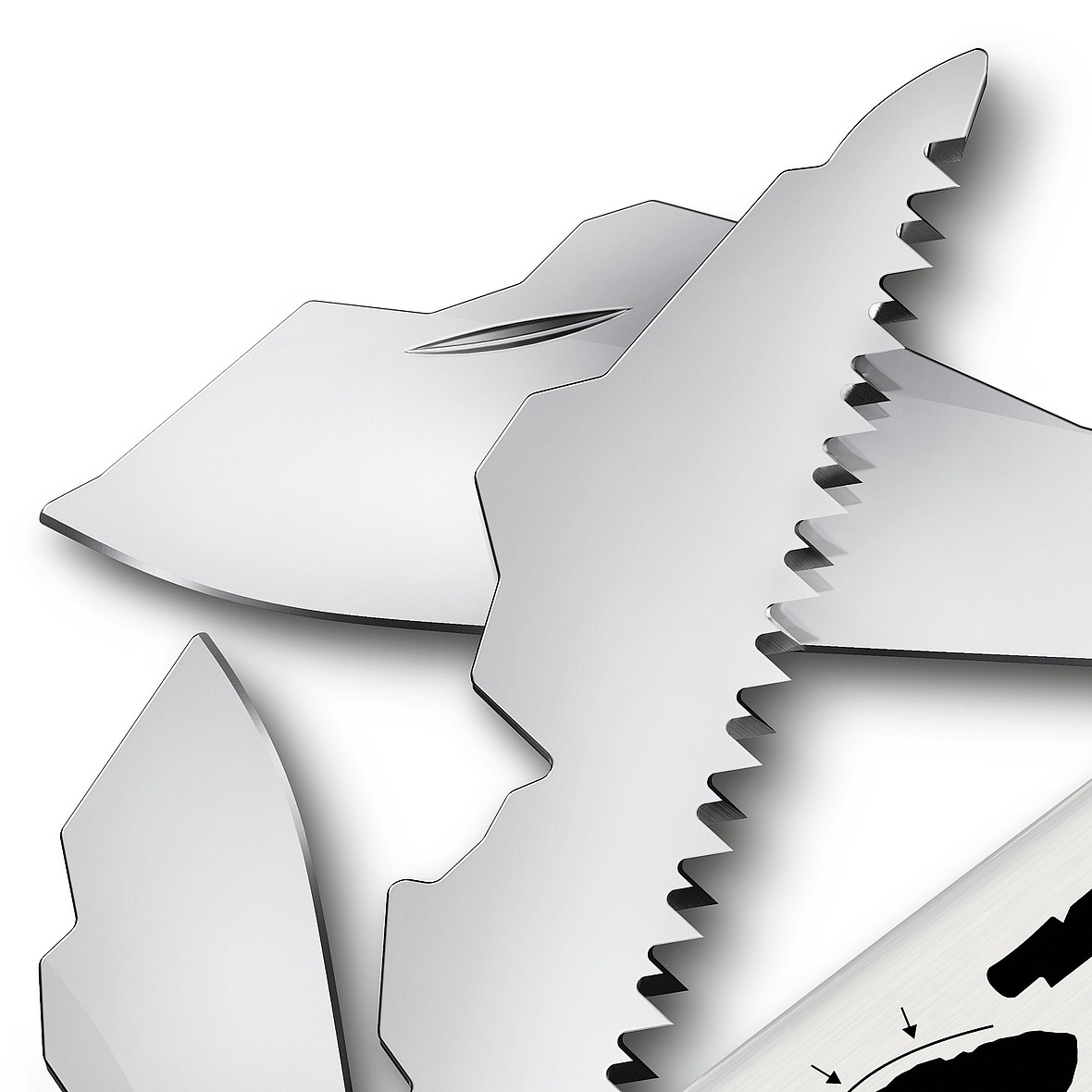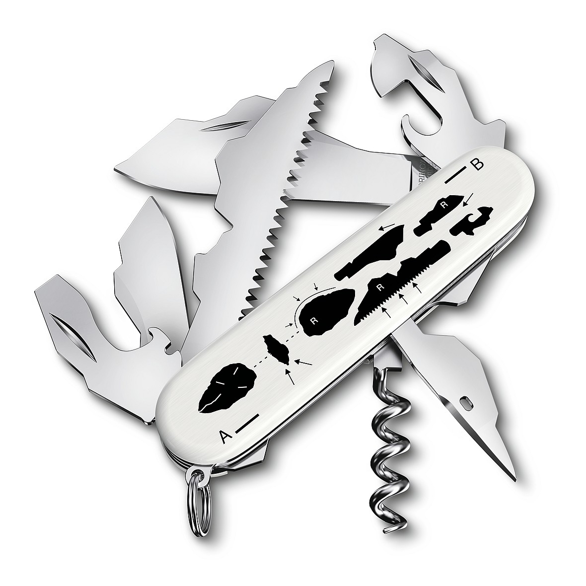 The creative process took two years of development, rendering an unexpected design to a practically unchanged product for decades–a daring refresh that Victorinox feels quite proud of. The design of the blades represents the shapes of ancient tools made from stone used for cutting, drilling, skinning, and other prehistoric missions.