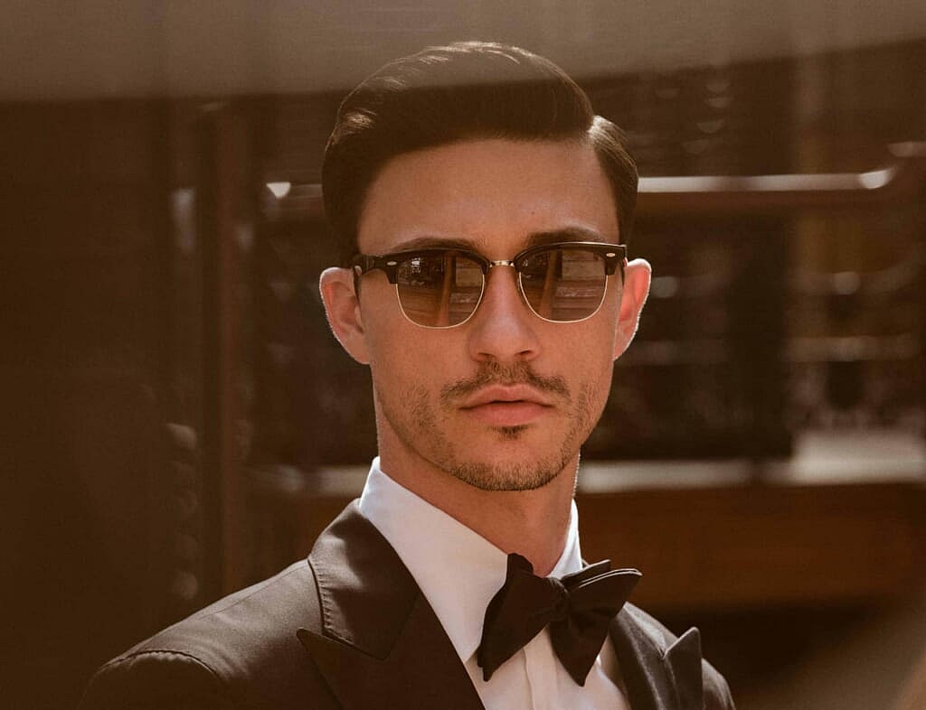 Oliver Peoples noted the Oliver Sun features a “timeless square acetate frame” that accents any face shape handsomely.