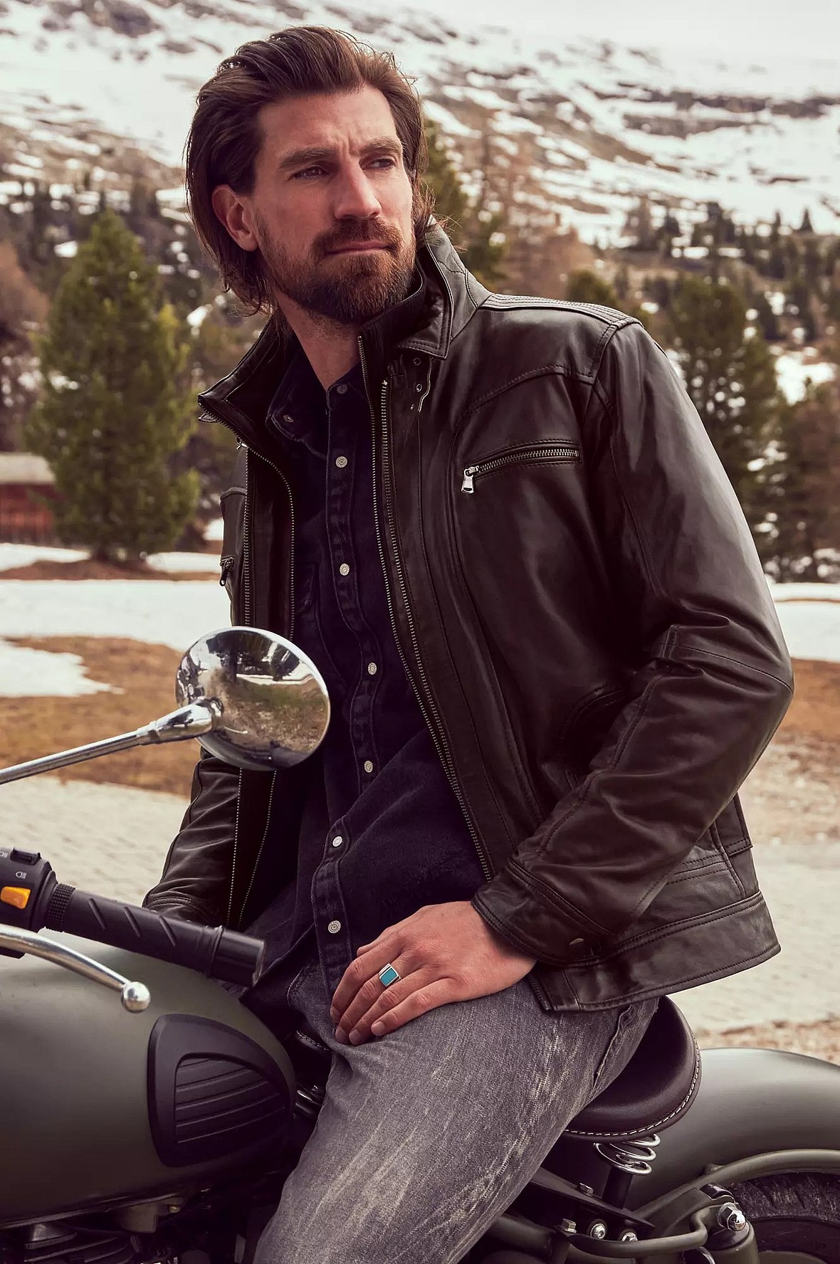 Overland is a family-owned company that has been making leather goods and apparel since 1973. Their designs range from Yellowstone vibes to more city-dwelling silhouettes like this waxed lambskin jacket. The removable collar and bib makes it instantly winter-ready but also lets you make the shift to spring. $495