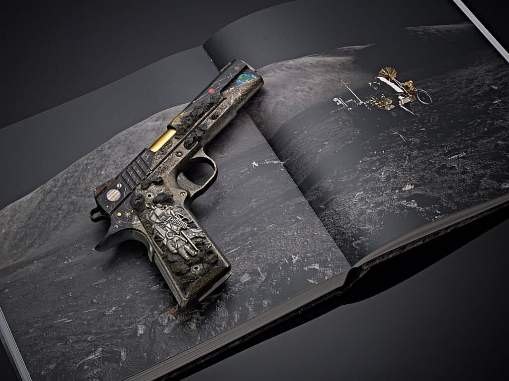 Cabot Guns has unveiled a stellar “Moonshot” 1911 pistol encrusted with lunar meteorite fragments and a constellation of precious stones that celebrates the original moon landing.