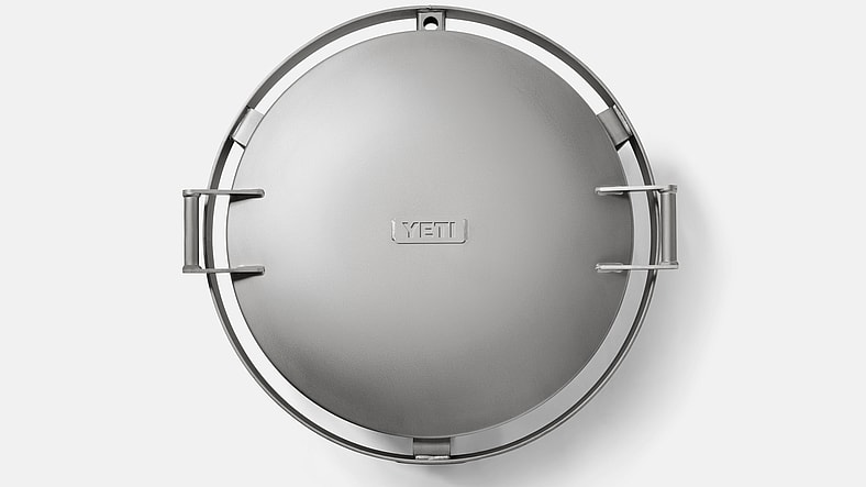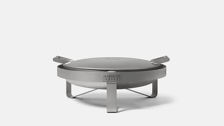 Though the 70-pound circular brazier boasts the same shimmering metallic aesthetic as Yeti’s stainless steel-paneled V series of premium vacuum-sealed coolers, the firepit is actually made of Corten steel, an alloy that naturally forms a dense corrosion-resistant patina through normal use. Designed in Yeti’s home state of Texas with the help of custom smoker brand Mill Scale Metalworks and crafted in Iowa, the firepit is topped with an all-weather, Yeti-stamped lid and comes with an iron that’s also fashioned from Corten steel.