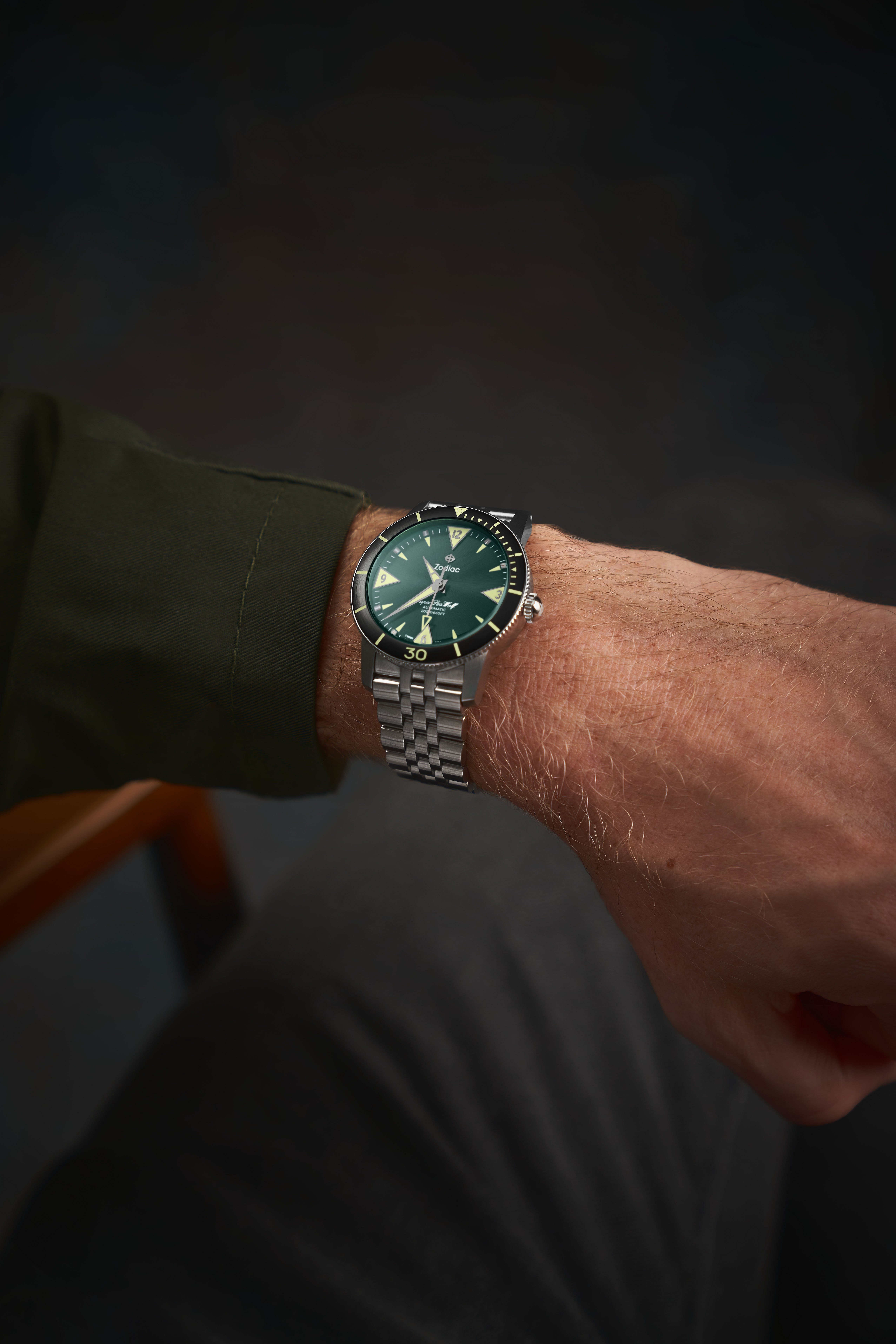 Zodiac is celebrating the 70th anniversary of its signature Sea Wolf Diver—now called the Super Sea Wolf Skin Diver—with a green colorway to kick off a series of new hues.