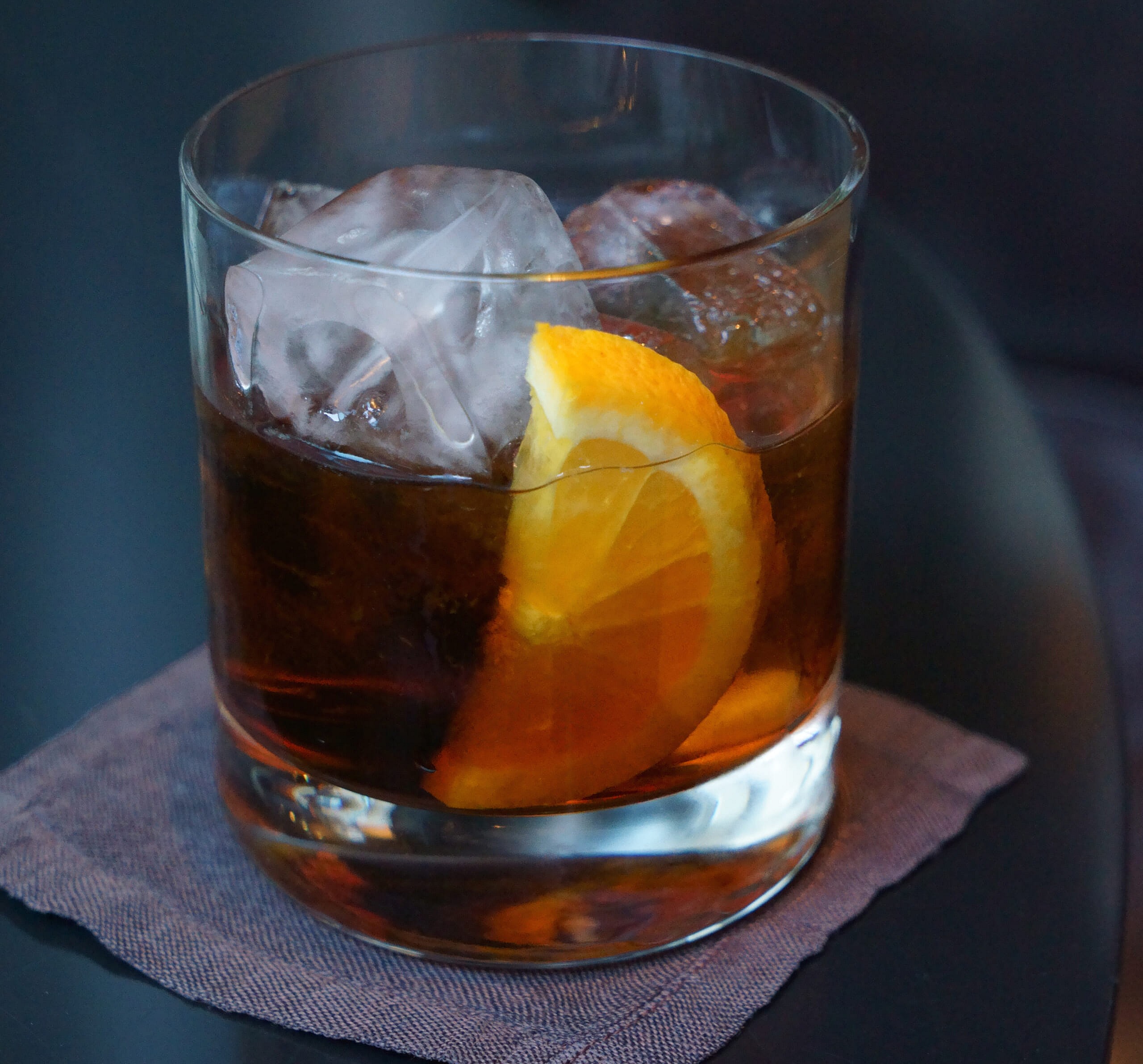 1 /2 ounces Campari; 1 1/2 ounces sweet vermouth from Torino; 1/2 slice orange.