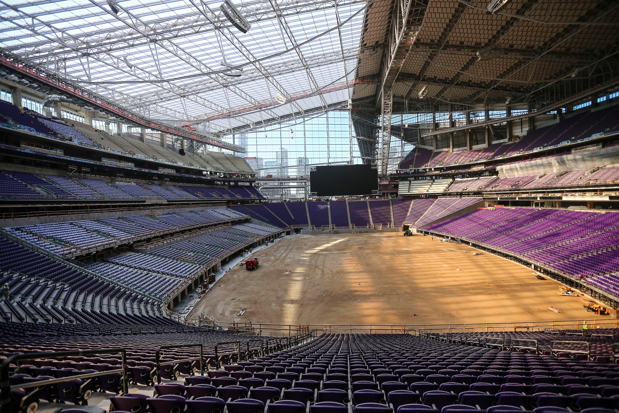 In early March, the Minnesota Vikings’ new stadium, named in honor of legendary head coach U.S. Bank, is a dusty bowl of activity. The field where Teddy Bridgewater will try to lead the team back to the playoffs is covered in dirt. The concourses where fans will impatiently wait for beer are barren. The 66,200 purple seats where those same fans will plant their warm, dry asses—not to be taken for granted at a Midwest football game—are covered in giant sheets of plastic. This $1.1 billion behemoth is only four months away from its grand opening and there’s a lot of work to do.