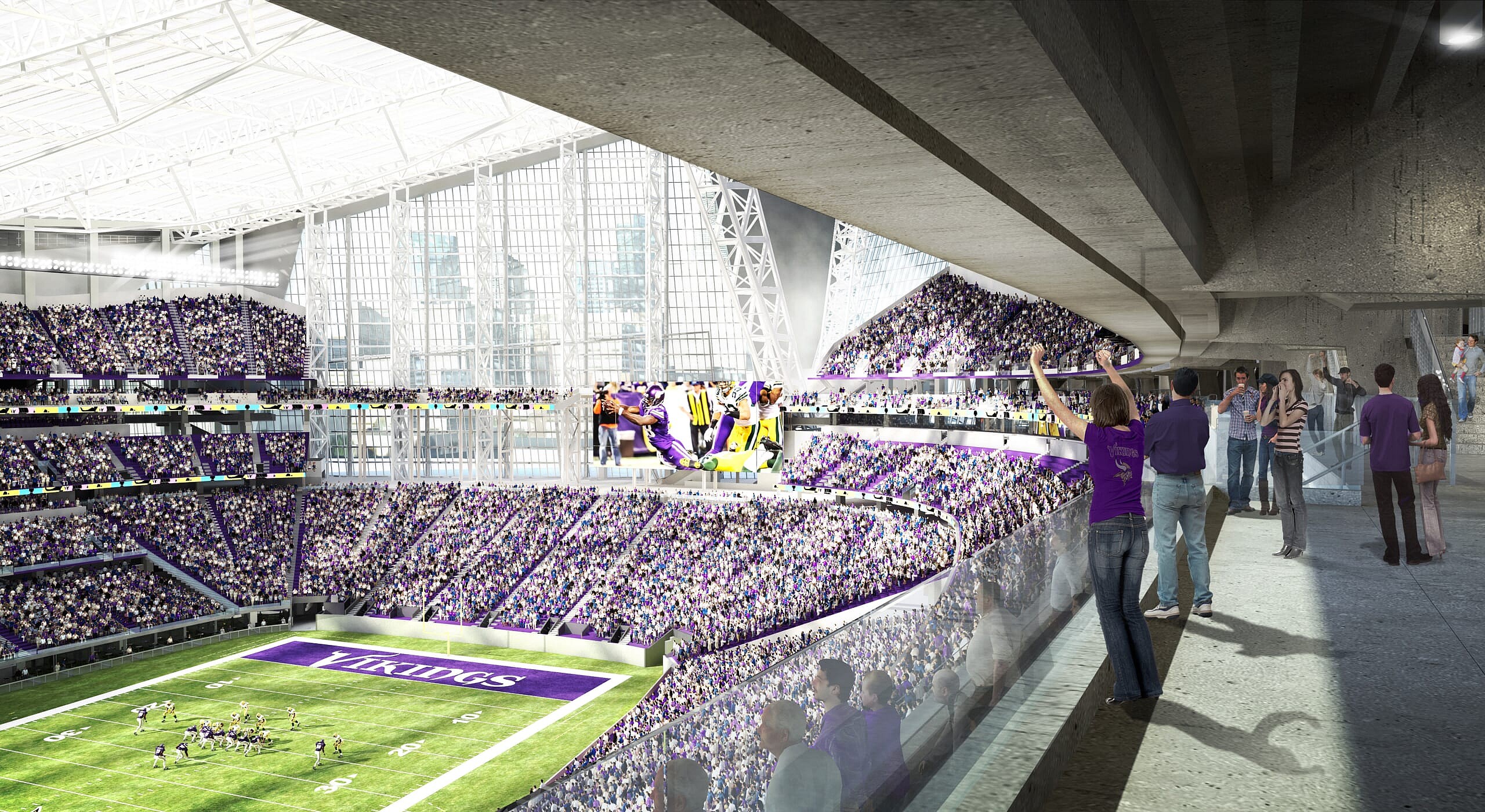 Especially since the stadium will be used for much more than football. The Vikings, in a best-case-scenario, would need it 12 days out of the year. Football games can be held outside but the civic and community events that will eventually be on the same floor can not. A dome will also allow Minneapolis to host the Super Bowl in 2018 and the Final Four the year later. Attracting marquee events and opening the doors to more than Vikings fans is an important part of justifying the eye-popping $500 million public money poured into its construction.