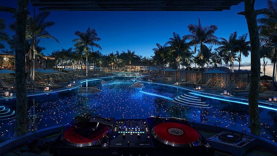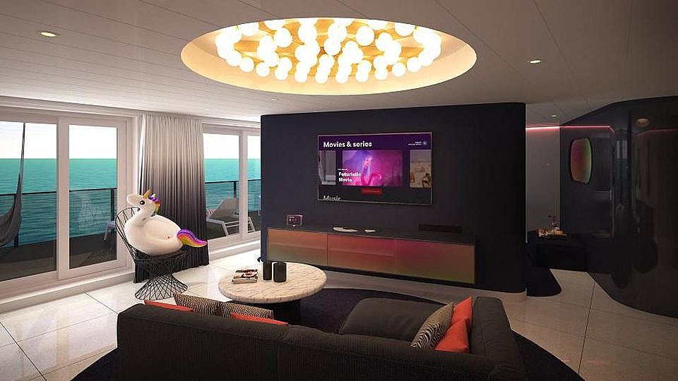 The “rebellious luxe experience” features “Rock Star Suites”, access to a Bahamian beach club and more than 20 restaurants that aim to blow away the typical cruise ship buffet.