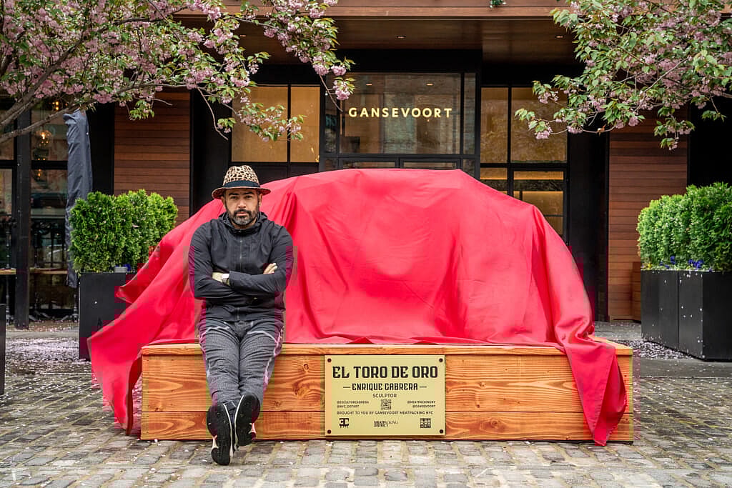 As the eighth bull in this series. El Toro de Oro breaks Cabrera’s traditional approach. Tailor-made for the Meatpacking District, this latest work is also Cabrera’s only bull built to live outdoors. “While all of my projects have a magnificent creation story, this one is even more special to offer to the world as we slowly come out of a global pandemic,” Cabrera says of the sculpture’s resilience.