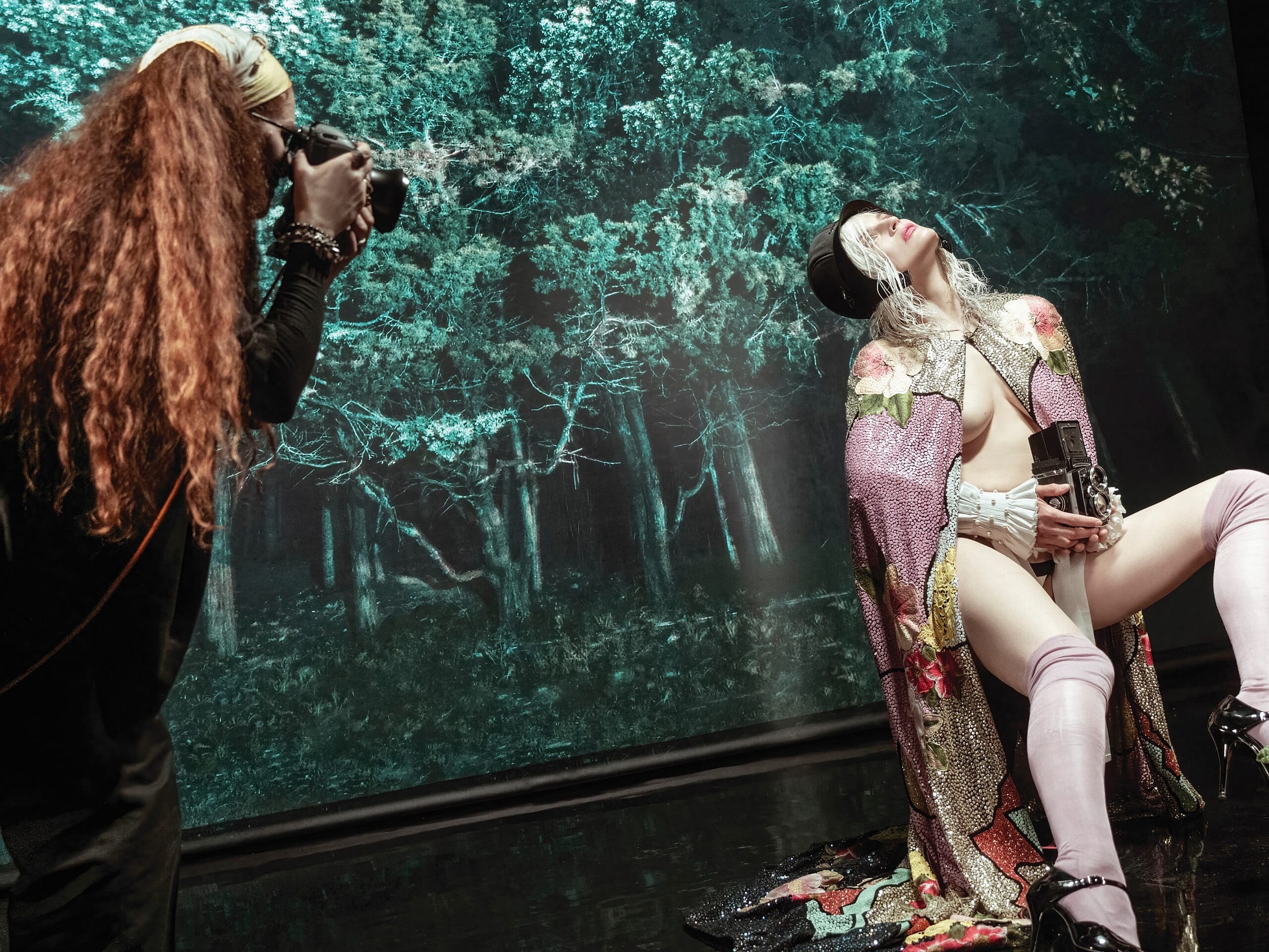 “The Photographer” muse came to Summerton first and is portrayed by supermodel Guinevere van Seenus, seen in a revealing floral shawl, stockings, and heels.
