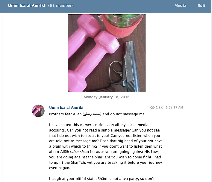 Meanwhile, that favorite jihadi pastime of aggressively messaging random women online — a hobby favored by dweebs of all political stripes — just earned some thirsty-ass scrubs a major social media smackdown from one of their own. Writing on Telegram, a poster going by the name Umm Isa al Amriki just totally read her “brothers” the riot for sliding into her messages like