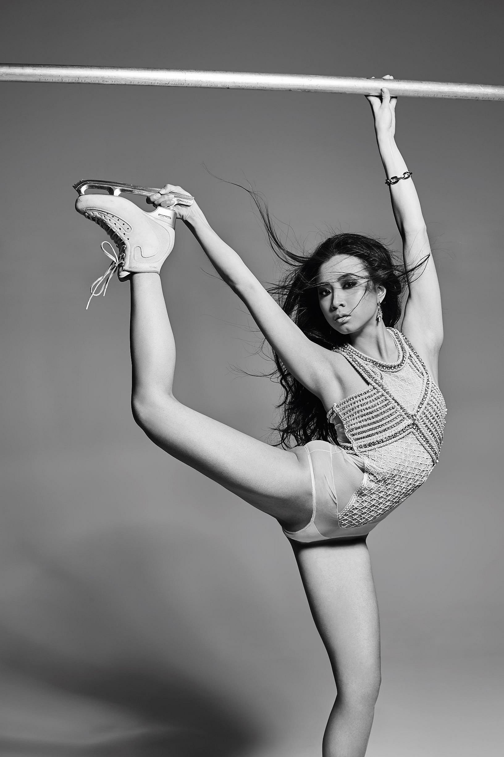 Turns out she was the perfect candidate. Nguyen is the epitome of beauty and brains, having worked towards a degree in biochemistry at California State University, Fullerton with hopes of entering the medical field. “I was aiming to become a pediatric doctor or dermatologist,” she explains. “I grew up in an environment where I was expected to follow a certain path. I was meant to pursue a career in medicine and follow in the footsteps of my relatives and had always accepted that as my goal in life.” Now, however, she’s trading in her ice skates and textbooks for high-powered photo shoots and glossy magazine spreads.