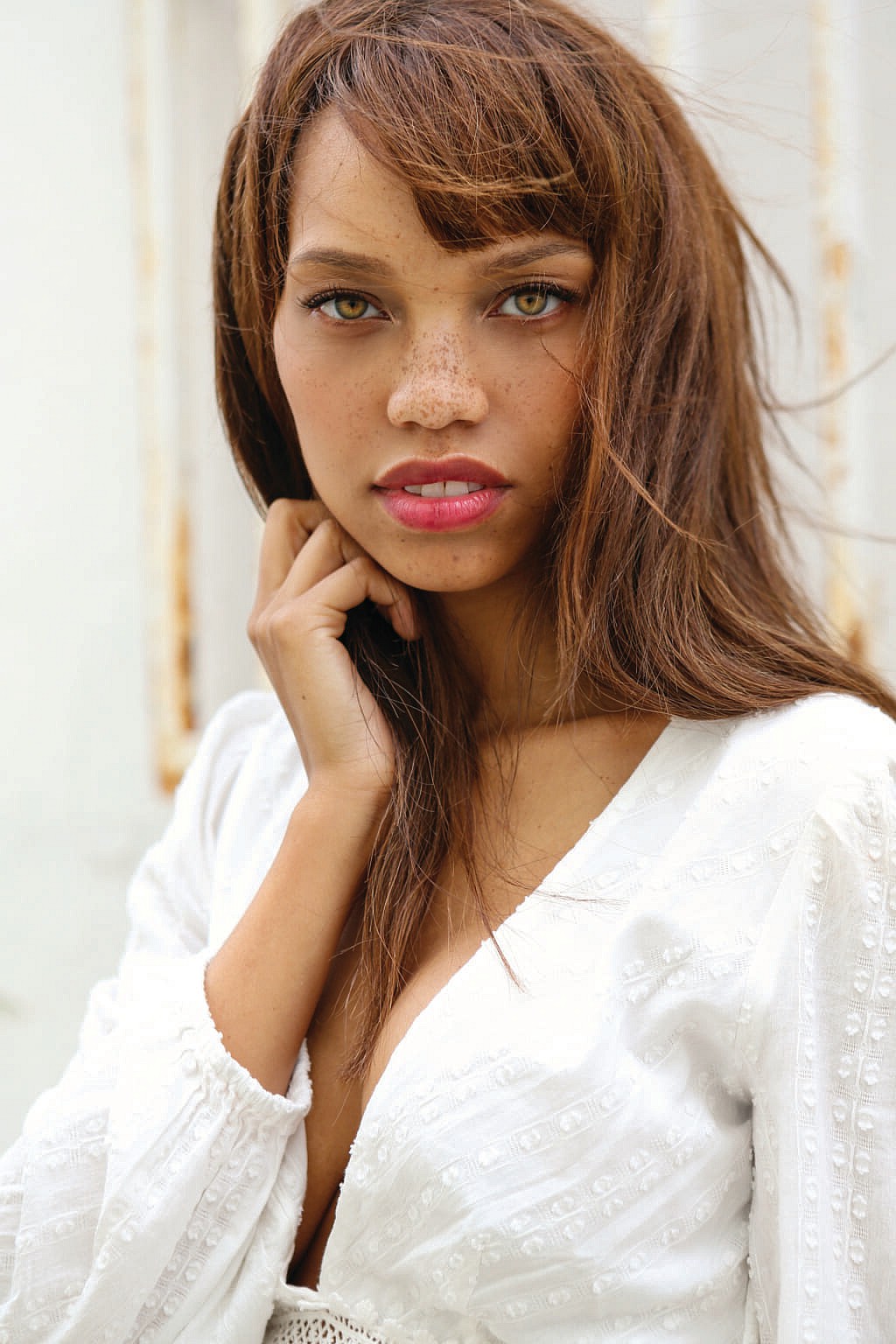 If Camilla is any indication, the union of captivating hazel eyes and bronze skin is an otherworldly level of enchanting. Relatively new to the modeling scene, she was discovered after attending an open call in 2019, and has since shot campaigns for Guess.