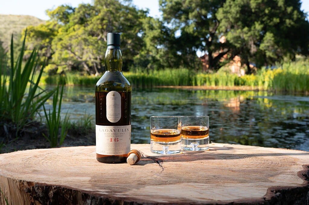 NICK: We were in Season 6, Chris Pratt had been cast in Guardians of the Galaxy, and if we wanted to keep him on the show, we had to go to England to shoot it. So, the producers strategized a way to get the whole staff to London, and because Ron vociferously hated Europe, among other things, Leslie cooked up a treasure hunt and at the end of it was the Lagavulin Distillery. It was all cooked up by the minds of great writers, with me approaching it by boat with tears in my eyes. And then we just hit it off, the brand and me.