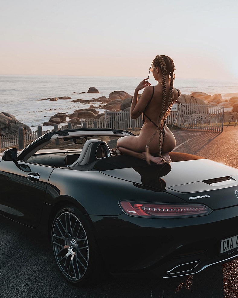 “Living in Miami, where there’s always a focus on the trendiest elements of a lavish lifestyle—luxury cars, yachts and more—it feels fitting to embrace this aesthetic,” he says. “Photographing models with opulent automobiles captures a unique atmosphere of style, success and luxury. This combination not only commands attention but also underscores prestige and elegance.”