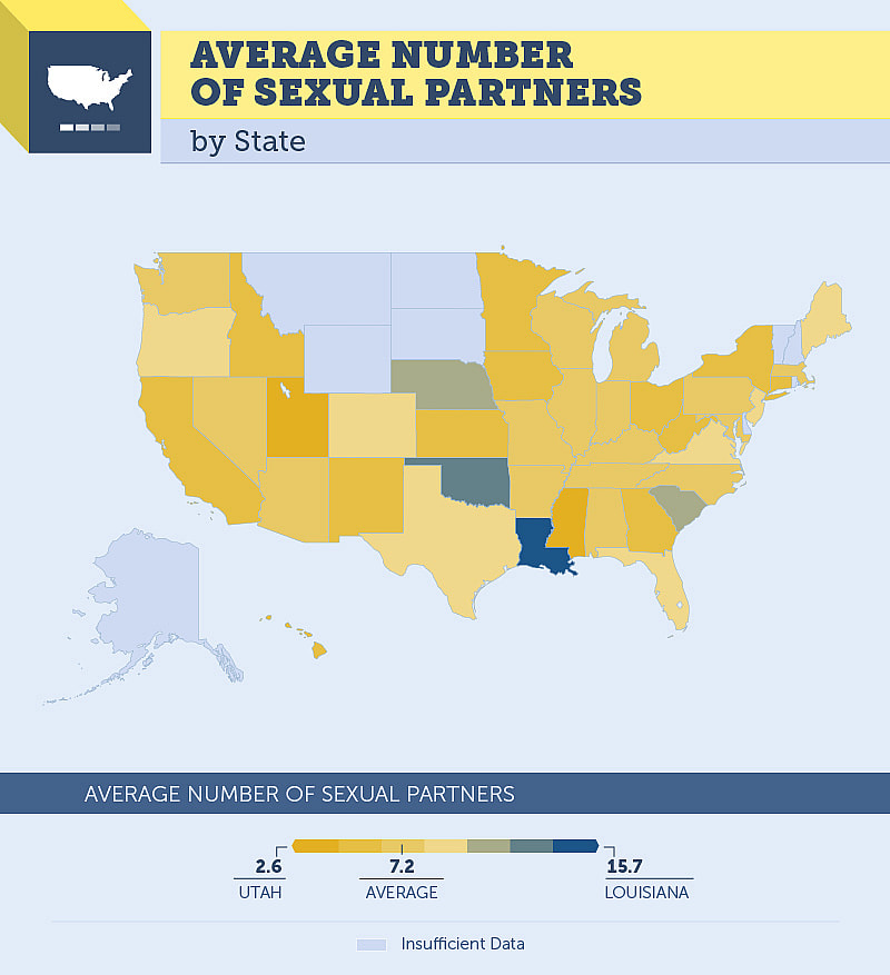 The results from within the United States were even more surprising. People of Louisiana reported having the highest number of sexual partners, at an average of 15.7, way ahead of the national average of 7.2.