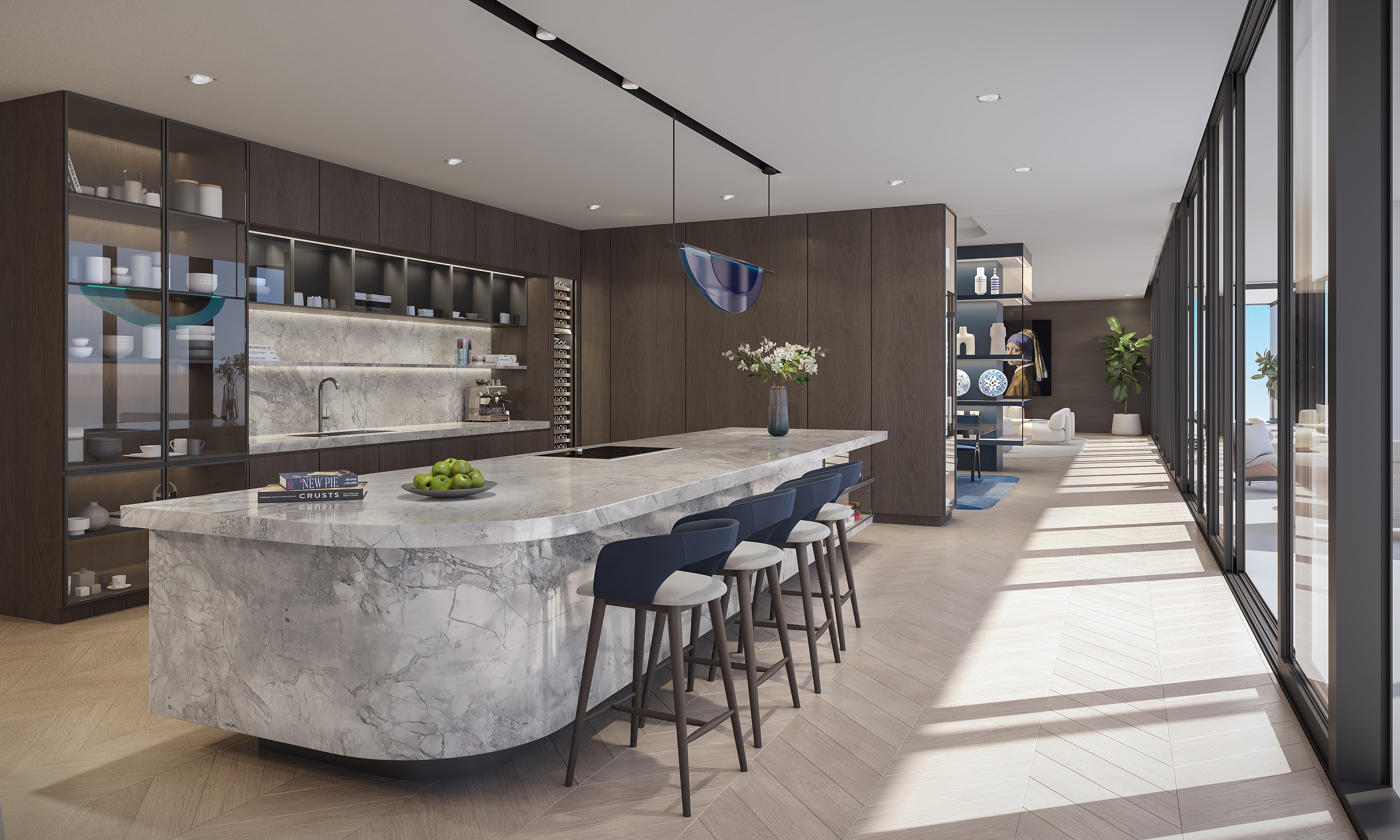 Additionally, the owner will have access to a number of Waldorf Astoria amenities, including the Peacock Alley specialty restaurant, a resort-style pool deck with private cabanas, wellness spa and fitness center, billiard room, and an app from which the owner can access concierge services ranging from room service and house car reservations to package delivery and dog walking.