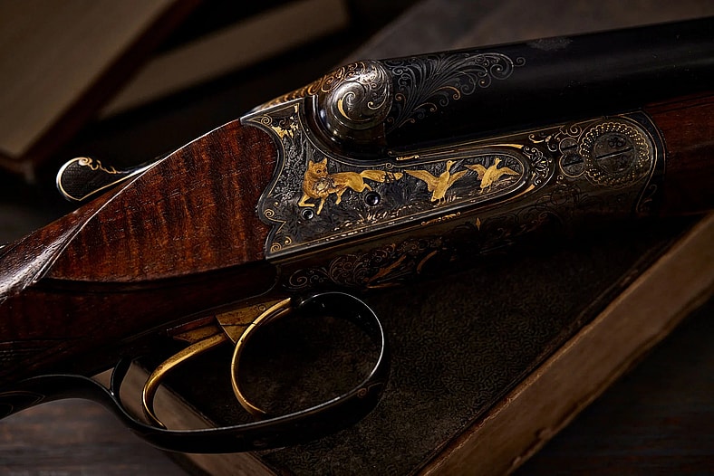 Priced at $125,000, this Kruschev-gifted bespoke shotgun is available to purchase from the Raab Collection.
