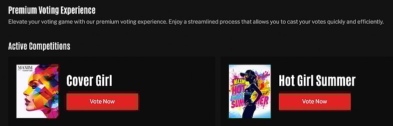 Once you’re signed up, hit the “Votes” tab and dive into the action. Pick a competition, check out the stunning lineup of models, and vote for your favorites. Every vote you cast isn’t just a show of support—it’s your ticket to winning $2,000 in cold, hard cash. If your vote wins, you’ll take home $2,000, and the model you voted for gets a sweet $2,000 bonus too. It’s a win-win for you and your favorite Maxim Cover Girl contender. Ready to spread the love and score big? Get voting!