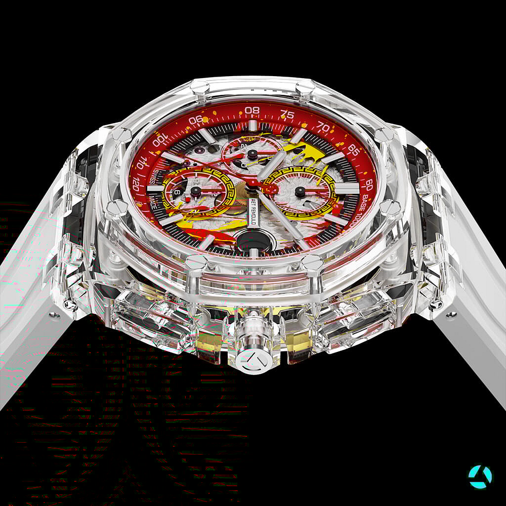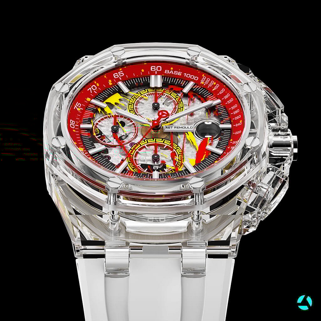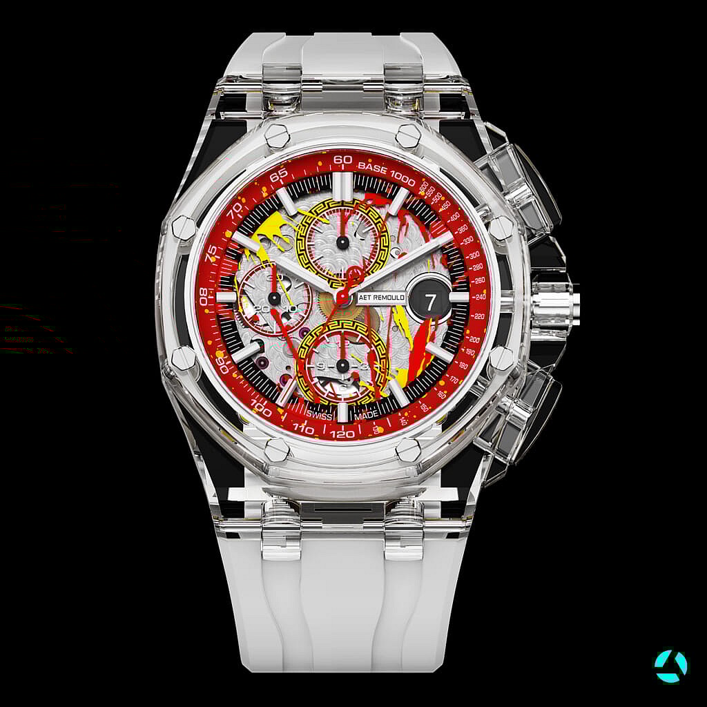 AET Remould is known for the use of fine, innovative materials such as sapphire, ceramics and cermets. The Lochagos is no exception to the rule, as a full sapphire case was used in its creation, something that had never been used in Audemars Piguet Offshore models previously.