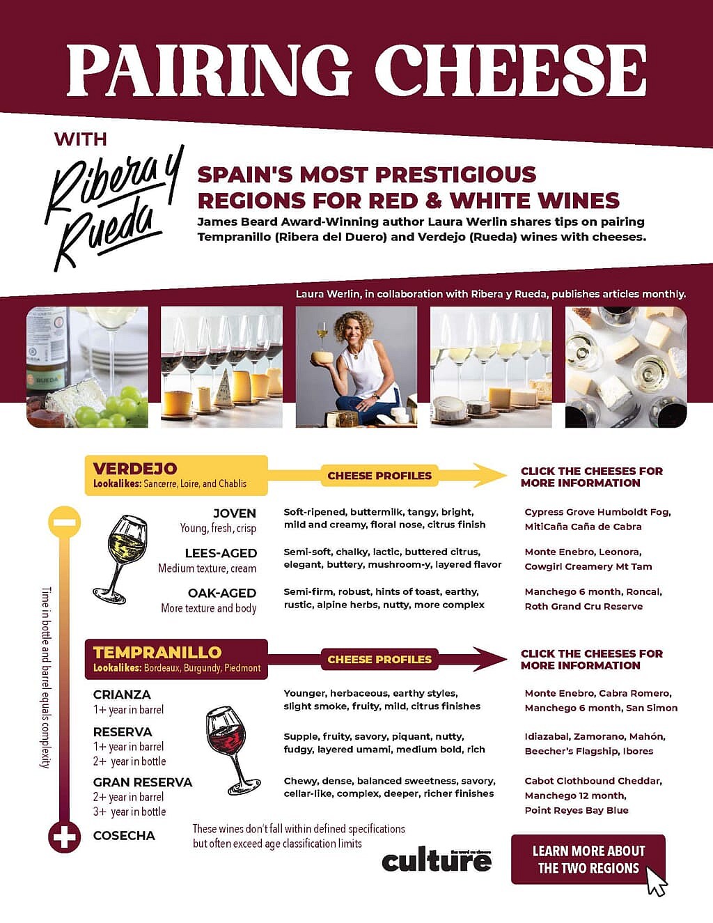 This range of flavors and medium- to full-bodied texture ensures there’s a cheese for pretty much every style and age of Ribera Tempranillo. Once you discover the wines, selecting its best cheese partners becomes a whole lot easier. Did we say fun?