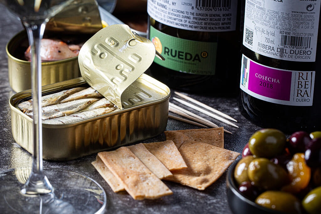 Or take Spanish conservas – tinned fish. This may not be the first thing you think of when you think of wine pairings, but categorically these will very likely be the best versions of fish in a can you’ll ever taste – particularly the tuna. Packed in buttery Spanish olive oil, the meaty tuna takes on a richness and just-right tuna taste that makes it impossible not to eat directly from the can. Besides, who’s looking?