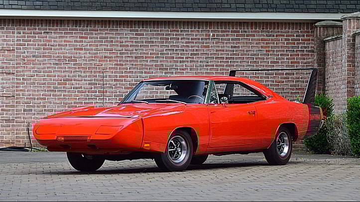 There was surely no more audacious performance car ever built than the 1969-’70 Dodge Daytona and its Plymouth Superbird twin. These wedge-nosed monsters employed Chrysler’s famed 426 Hemi or the 440 Wedge (the names refer to the shape of the engine’s combustion chambers) to create limited-production specials meant to legalize the cars’ aerodynamic bodies for Nascar racing. In the process, they created the most memorable silhouette to every roll out of a car factory.
