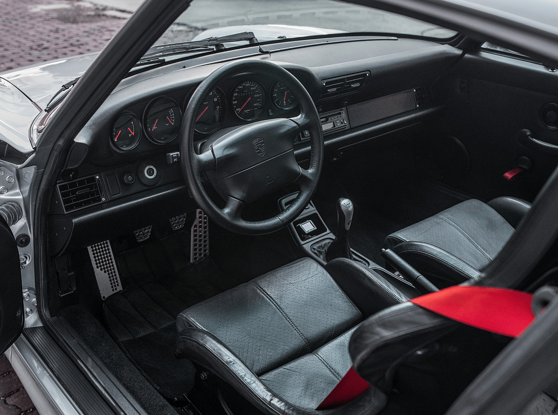 Powered by a 430-hp 3.6-liter flat-six, the 993 GT2 is the most expensive and fastest 911 model with an entirely air-cooled engine. Those horses are fed through a six-speed transmission and a 40/60 limited-slip diff. Performance highlights include zero-to-60 mph time of four seconds flat and a top speed of 190 mph.