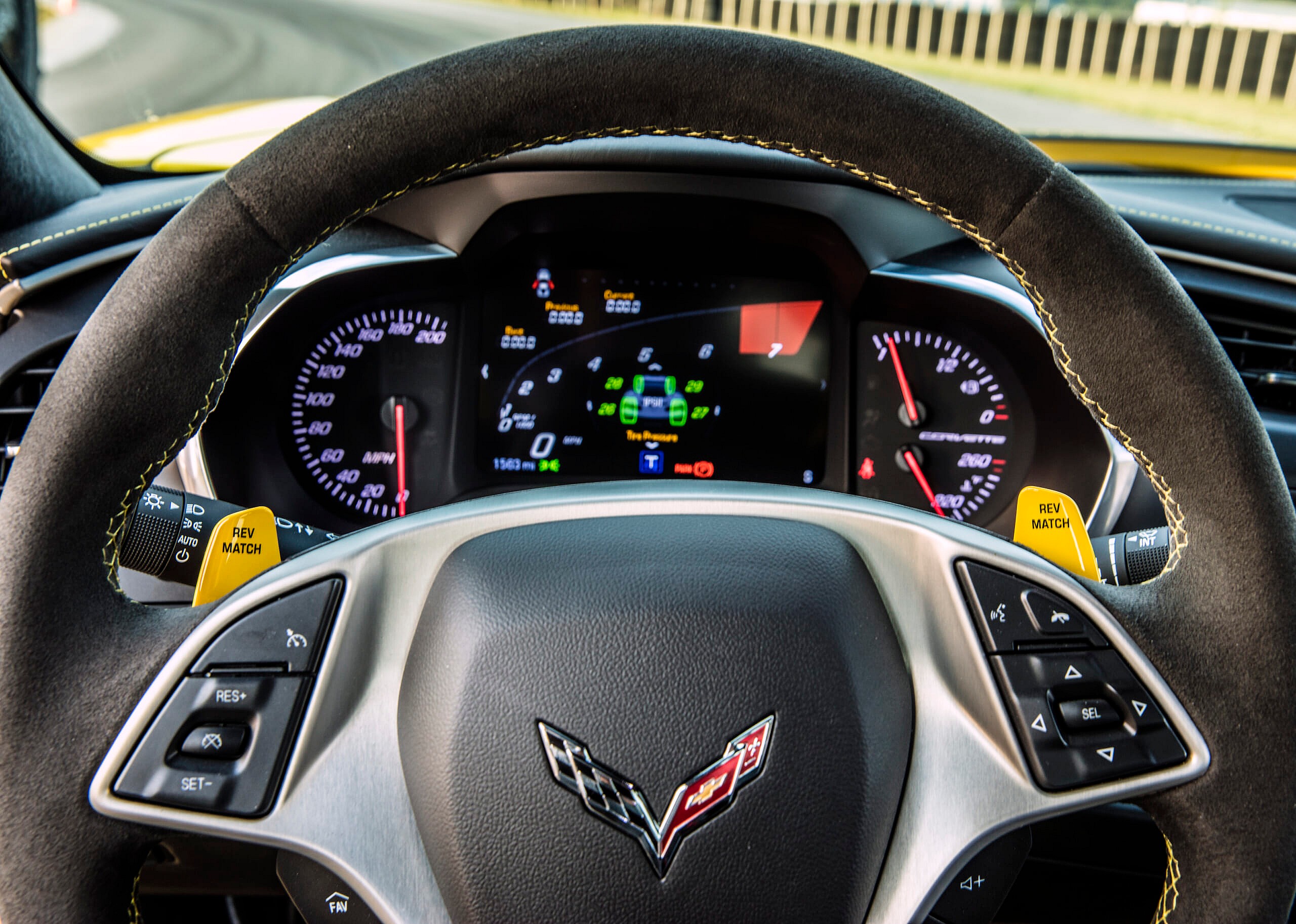 The optional Z07 performance package adds stickier Michelin Pilot Super Sport 2 tires and carbon ceramic brake rotors, producing 1.2 g of cornering force, 0-60 mph acceleration of 3.6 seconds, 11.8-second quarter-mile and 60-0 mph braking of less than 100 feet, putting it solidly into race car territory.