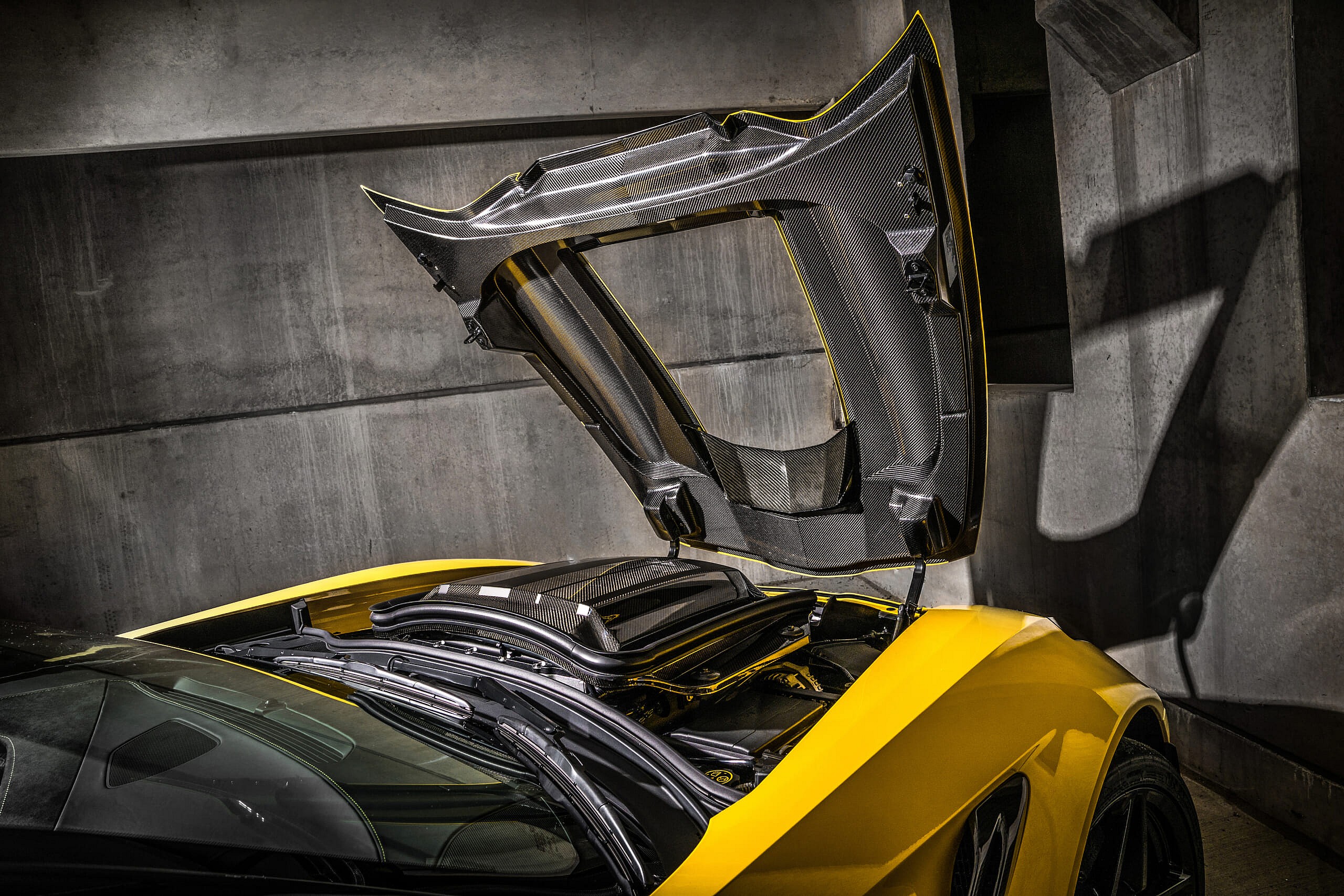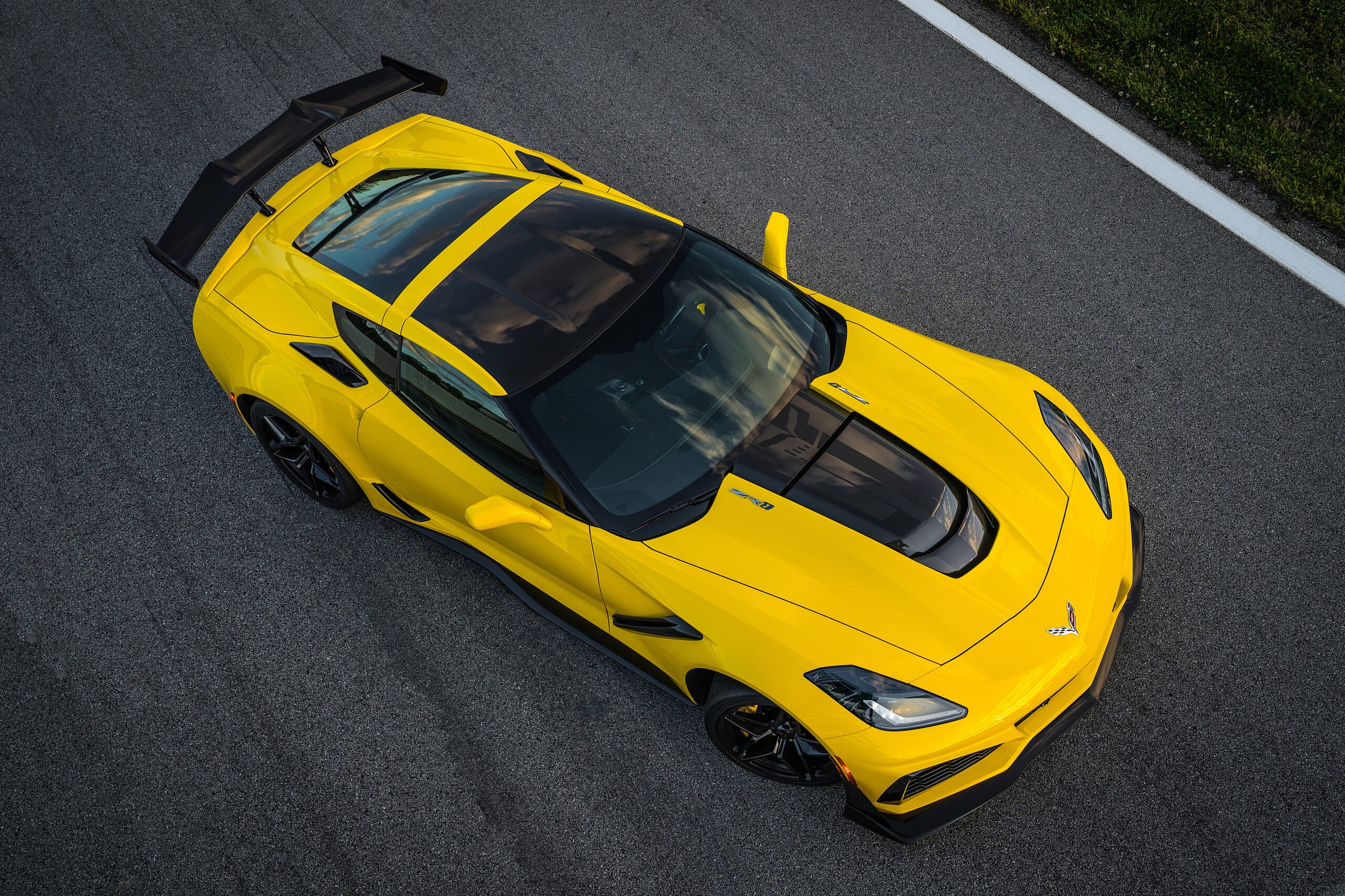 There’s another one too, invisible beneath its front bumper to balance the rear wing. They combine to produce 950 lbs. of traction-enhancing downforce at speed without increasing drag compared to the Z06.
