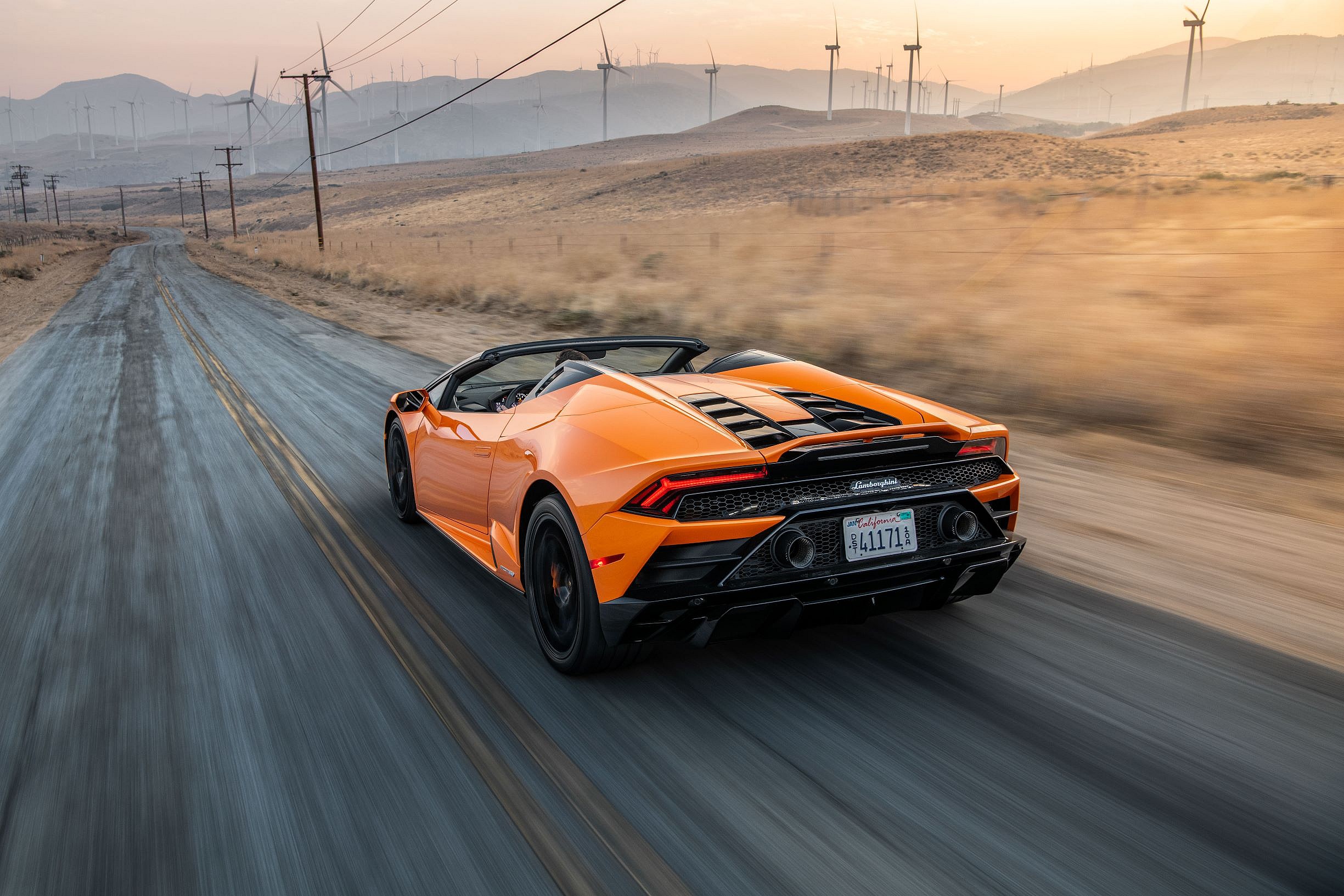 Zipping through the EVO’s 7-speed dual-clutch transmission we pass 160-mph in furious racket, the naturally aspirated V10 filling the cabin with glee. Later in the afternoon we’ll take a snow white EVO Spyder out on the roads around Willow Springs Raceway, and the sound will be even more direct with no roof or glass to muffle its way between us and the roar screaming from the dual cannon exhaust ports. But we won’t come to speeds even remotely close to what we’re hitting on Big Willow’s long fast track, so the sound here is even more euphonic. What a joy.