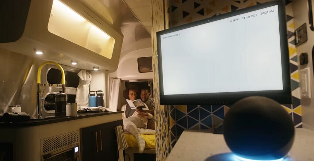 Car and Driver reports that 900 watts worth of solar panels allow users to live off the grid for up to two weeks, powering everything from heating and lighting to integrated Amazon Alexa voice control.