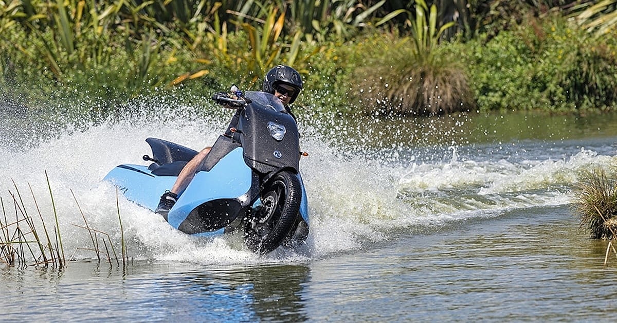 This Amphibious Motorcycle Turns Into a Jet Ski Once It Hits the Water