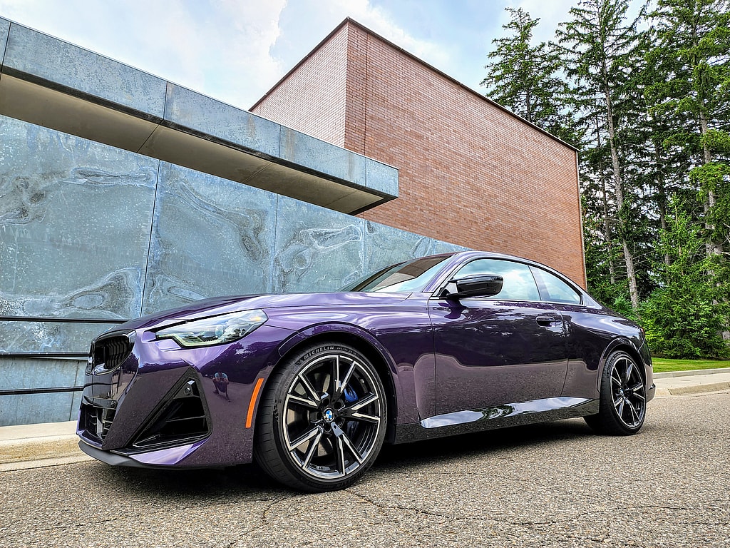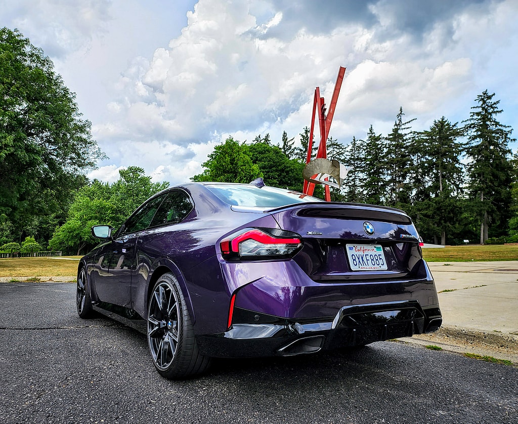 If you’re going for the Shadowline treatment (worth $400), the matte silver accents around the vehicle are switched for gloss black. Since we’re discussing extra spending, it would be shameful not to mention the eye-catching, neck-twisting $550 Thundernight Metallic purple colorway. This is arguably the prettiest paint job available for the 2022 BMW M240i and really complements the clean rear end sporting a new tail light design, which is guarded from the bottom by a large black air diffuser.