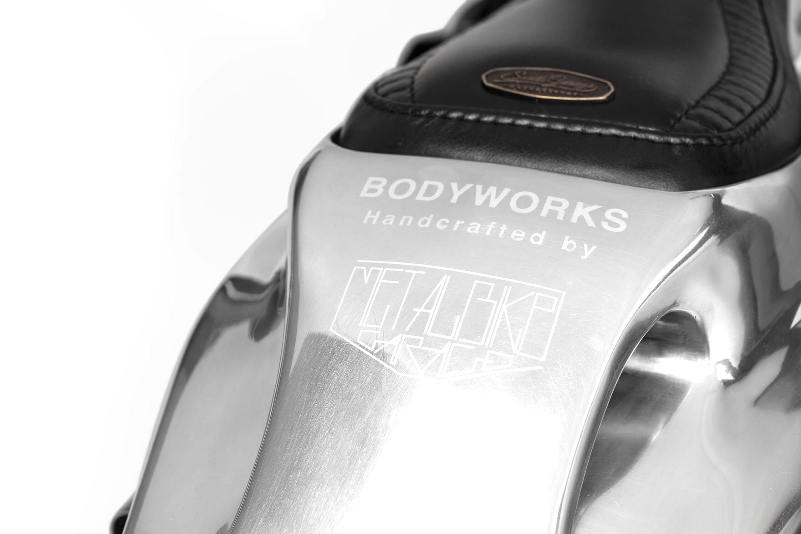 The metalwork was done by specialists at Metalbike Garage, where they used computer design software to direct a computer-controlled milling machine to carve a wooden buck that craftsmen then used to hammer the metal into shape.